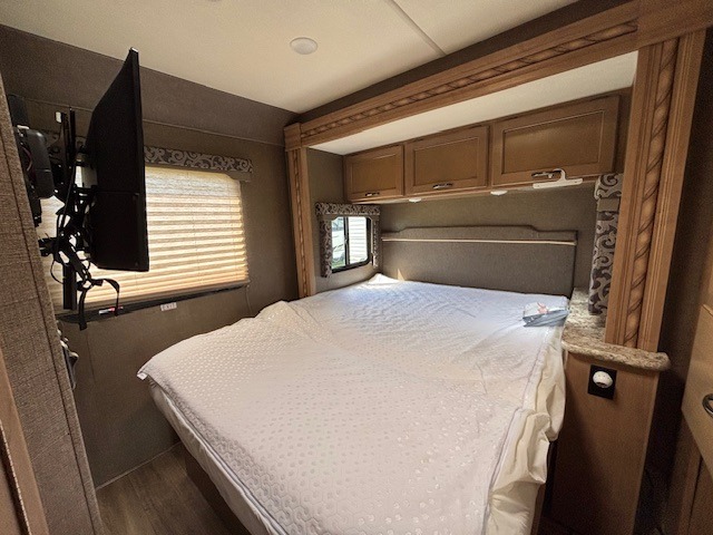 This Thor Motor Coach Four Winds model 22B is a great class C coach for you to take on any road trip! With a rear bath layout, a single slide out for added space, and your choice of chassis and engine you will quickly see the benefits this unit has to offer. After you are set up at your destination then come enjoy the comforts inside. Here you will find a 76" Dream dinette which can convert into additional sleeping space as well as a 54" x 96" cab-over bunk and a queen bed for mom and dad. When you want to unwind and watch a little TV then come enjoy the 40" LED TV above the cab! This unit can sleep 4 to 6 people comfortably.