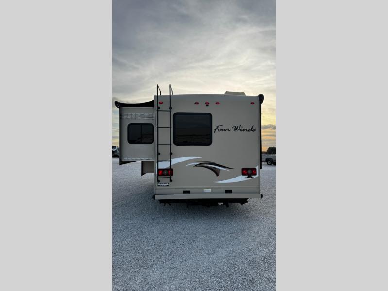 With any Four Winds class C gas coach you will enjoy the ease of driving and the affordable price. Inside you will find residential vinyl flooring, high-sheen cabinetry with nickel finish hardware, and laminate countertops making it easy to clean after a weekend get-a-away or a long vacation. Each model also includes a Dream dinette for playing games or eating meals. The stainless steel bathroom sink and foot flush porcelain toilet provide a convenience every where you stop. It's time to realize your dreams can come true with a Four Winds coach.