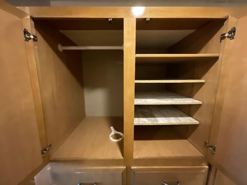This 3TRAX full wall slide out is great for having a larger group on vacation! It opens up the space for walking around and being able to feel like you like you in a home away from home. The cook of your family will LOVE having a residential fridge for storing all of the necessary items to cook amazing meals. There is also plenty of storage space for all of your things while you are away. There are three closets in the slide out, and there is a pantry for your nonperishables. Outside put up the awning and a few camp chairs and enjoy some outdoor entertainment on the 32" LED TV.