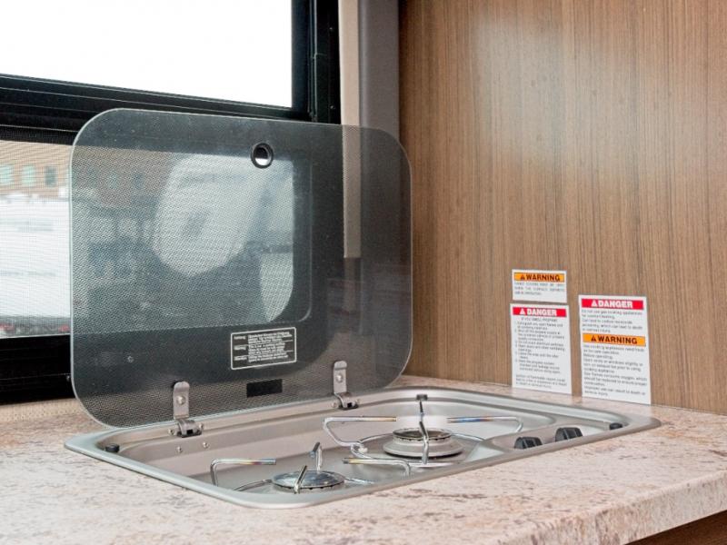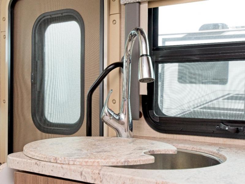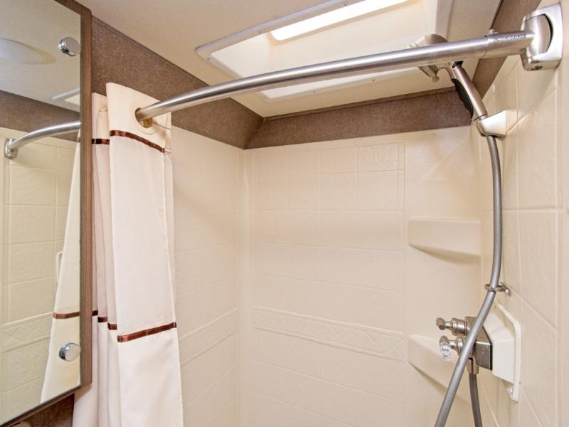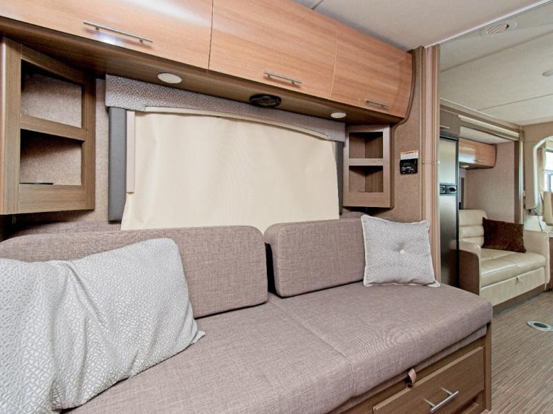 - Drop-down overhead bunk (38" x 73") above the cab for extra sleeping space