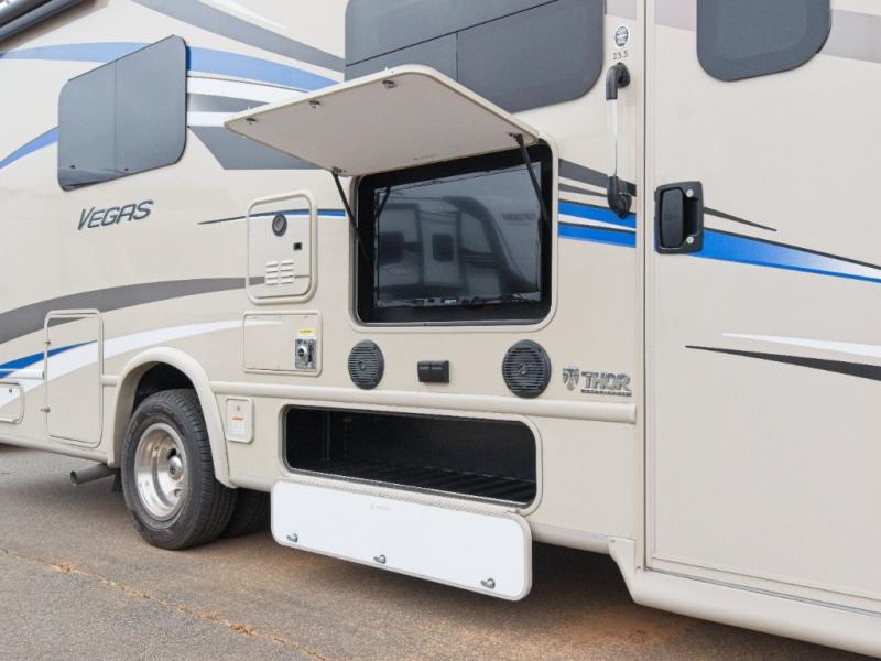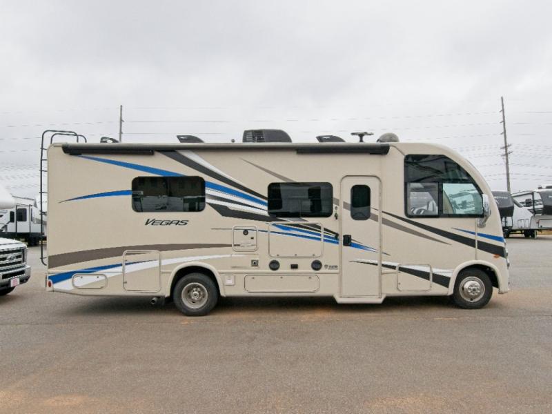 Explore in Comfort: 2025 Vegas RUV 25.5 Class A Gas Motorhome – Sleeps 5, Rear Bath, Twin-to-King Conversion