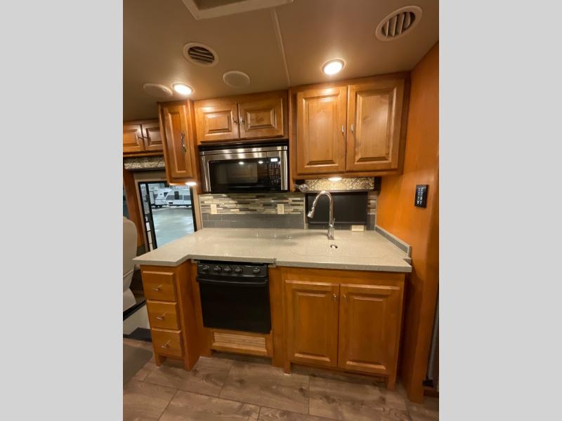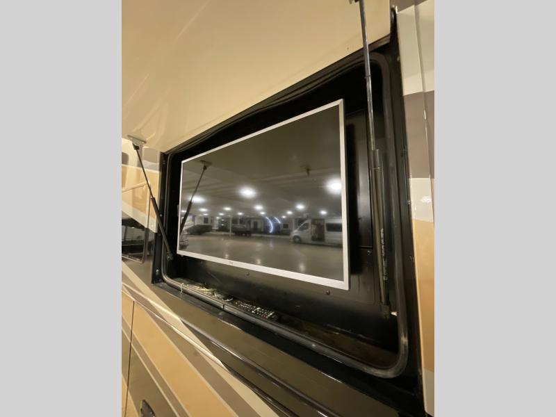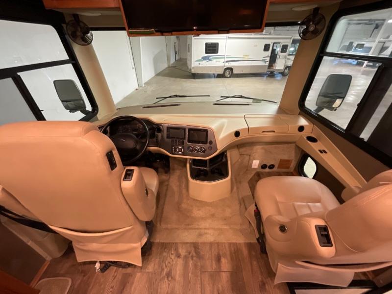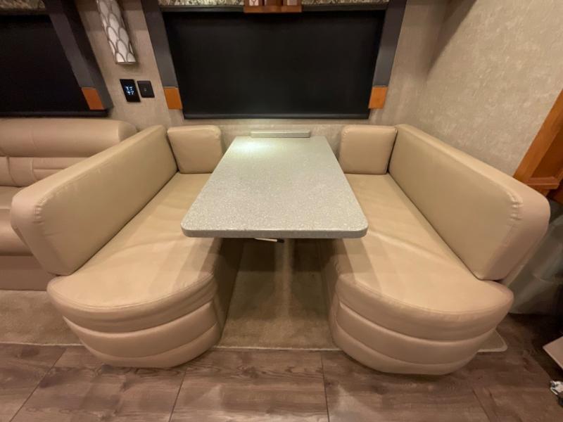 The cab area has two captain's chairs, overhead cabinets on each side, and an overhead TV, plus so much more!