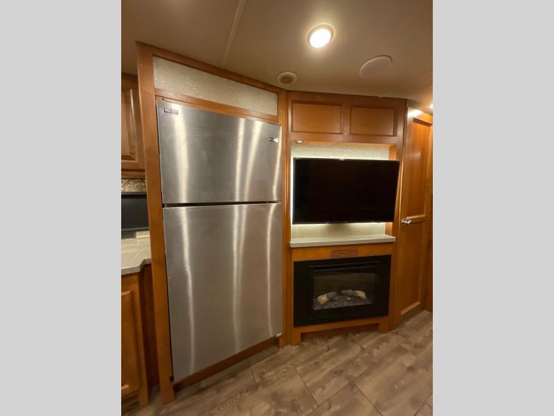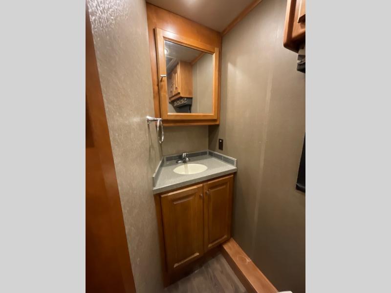 Continuing within the slide out there is a set of bunk beds for the kiddos or guests, plus a sofa bed, booth dinette, and overhead storage. You can also choose a table storage and a luxury lounge with removable dinette table. The full wall slide provides extra interior space from behind the driver's seat to the bedroom. A TV with optional fireplace is along the outside wall of the half bath.
