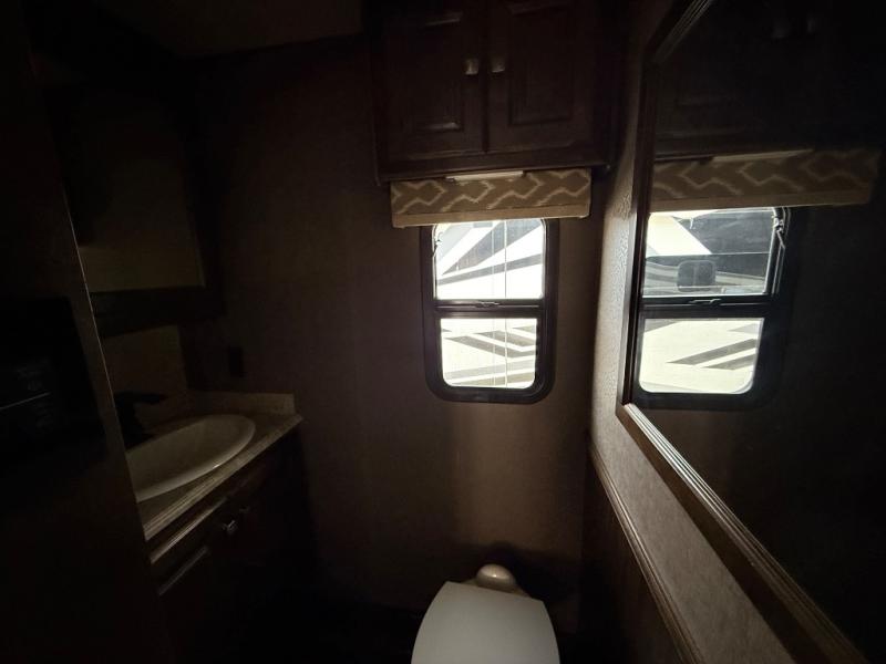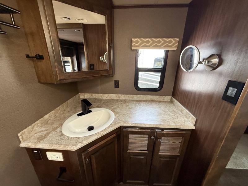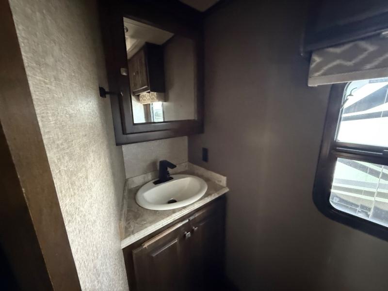 Continuing within the slide out there is a set of bunk beds for the kiddos or guests, plus a sofa bed, booth dinette, and overhead storage. You can also choose a table storage and a luxury lounge with removable dinette table. The full wall slide provides extra interior space from behind the driver's seat to the bedroom. A TV with optional fireplace is along the outside wall of the half bath.