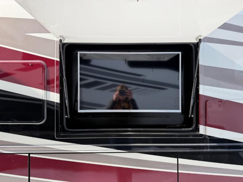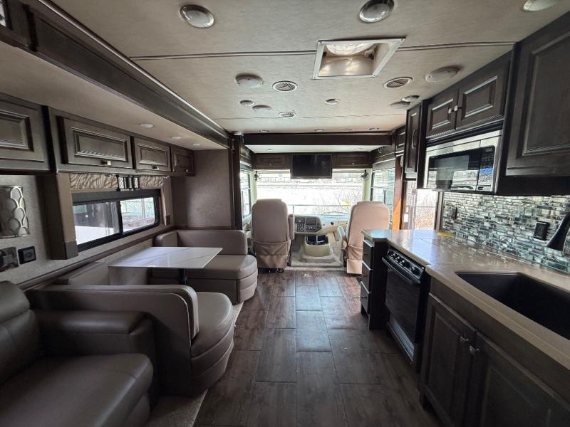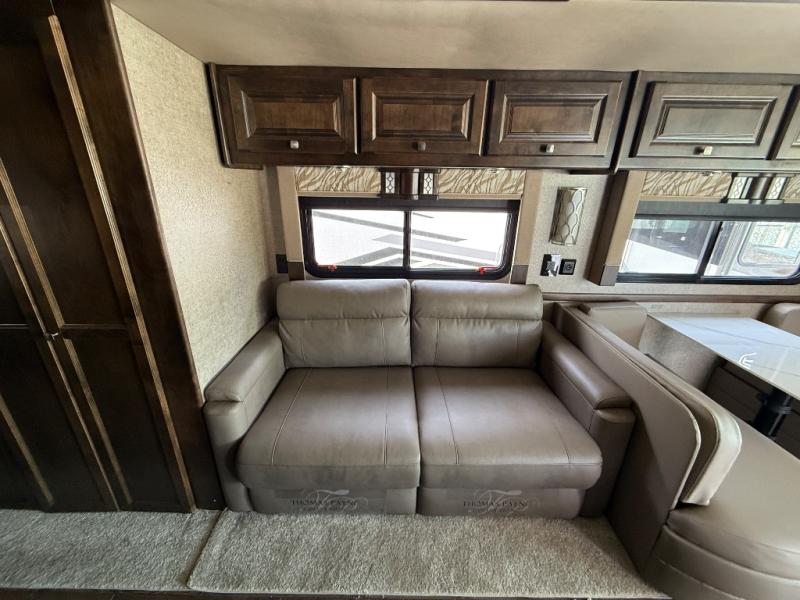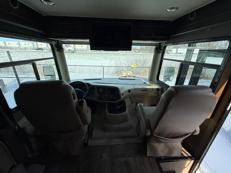 The cab area has two captain's chairs, overhead cabinets on each side, and an overhead TV, plus so much more!