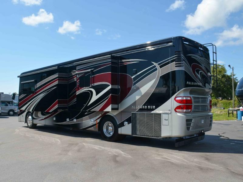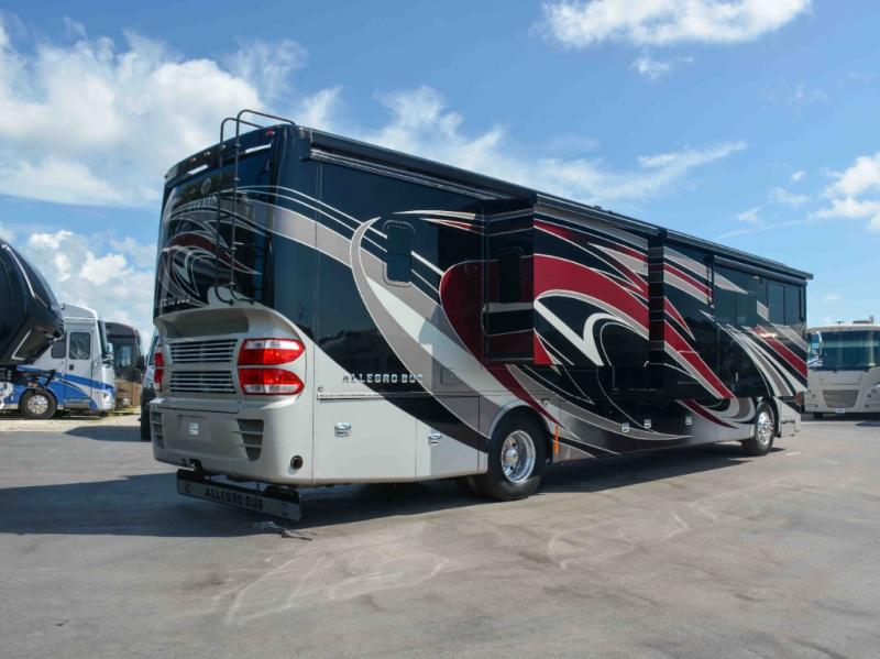 The Allegro Bus class A diesel motorhome allows you to enjoy luxury wherever you roam. A few key exterior features include ground effects lighting, dual pane tinted windows, a keyless entry door system for easy entrance, plus heated chrome power mirrors with remote adjustments and so much more! From uphill to downtown, the Allegro Bus is equipped to be your traveling companion.