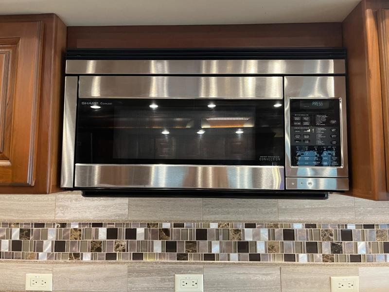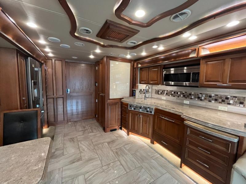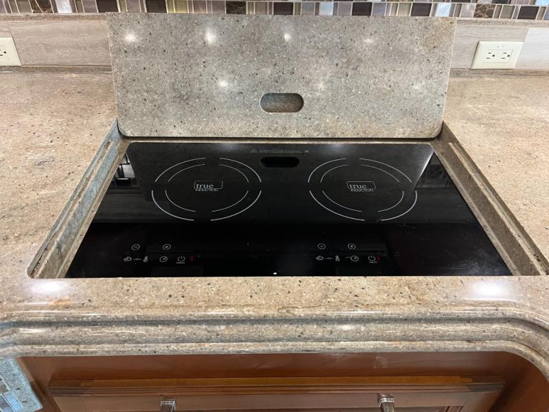 The well-appointed kitchen makes meal preparation on the road a pleasure. Featuring modern appliances, generous countertop space, a high-capacity refrigerator, a cooktop with oven, and plenty of storage cabinets, this space supports everything from quick breakfasts to full family dinners. The kitchen’s thoughtful layout keeps essentials organized and easy to access so you can cook with confidence.