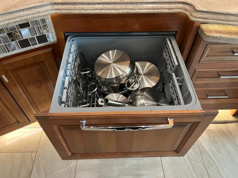Enjoy a full bathroom with high-quality fixtures, a roomy shower, and generous storage. Designed for convenience and comfort, this bathroom brings everyday luxury to life on the road and eliminates the need for frequent campground stopovers.