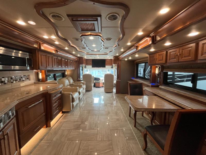 Plush seating, panoramic windows, and upscale finishes make the interior feel like a high-end home.