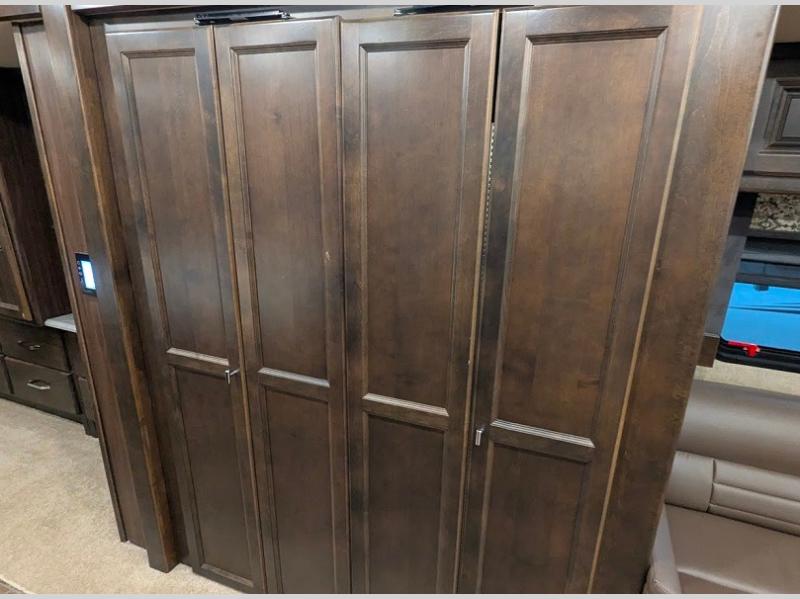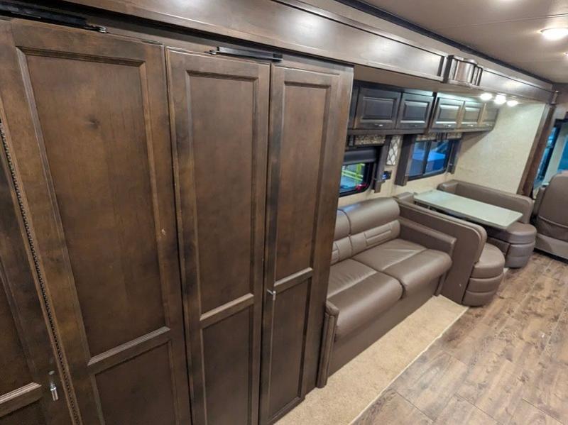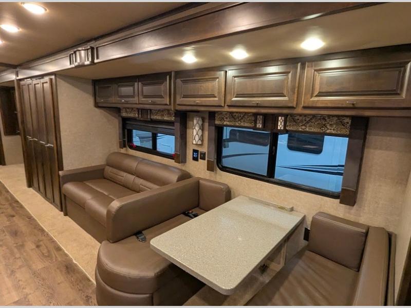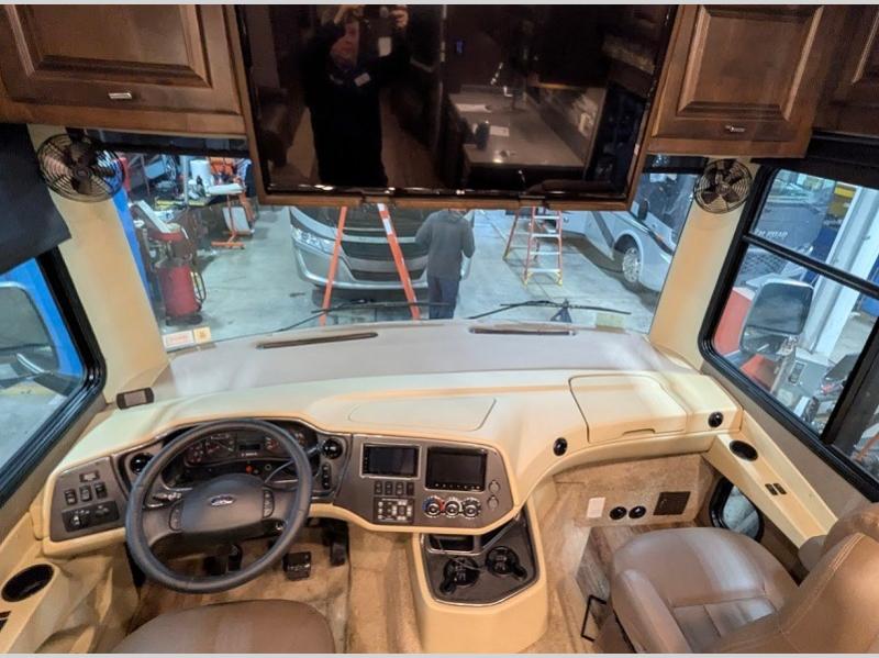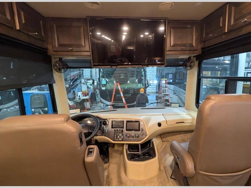 The cab area has two captain's chairs, overhead cabinets on each side, and an overhead TV, plus so much more!