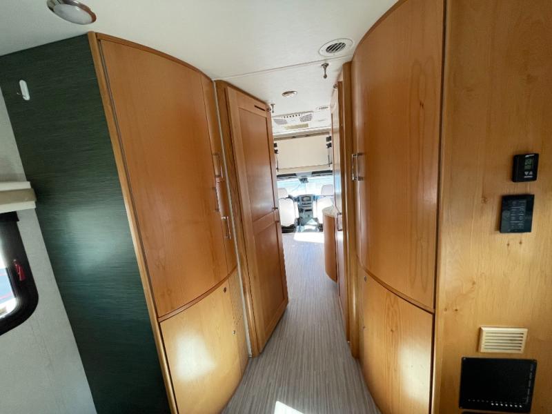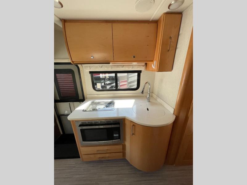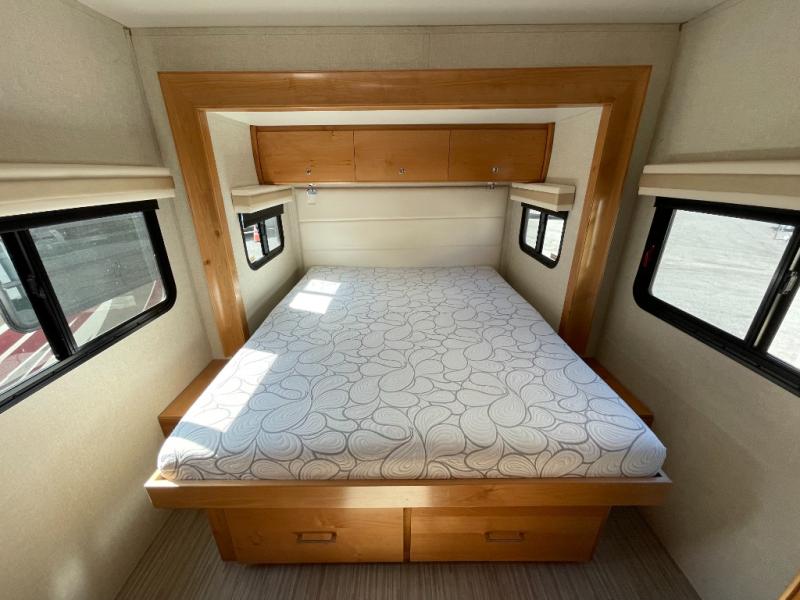 You don't have to wait very long to clean up when there is a split bathroom. This Wayfarer 24 BW class C diesel motorhome provides access to the shower separately from the private toilet and vanity with sink. And if you prefer your own wardrobe, this unit allows for his and hers clothing along separate sides of the coach. The two slide outs allow more interior floor space within the living room and the rear bedroom. And the loft bed over the cab provides additional sleeping space for your kids or overnight guests. There are several more features to see, and options to choose from.