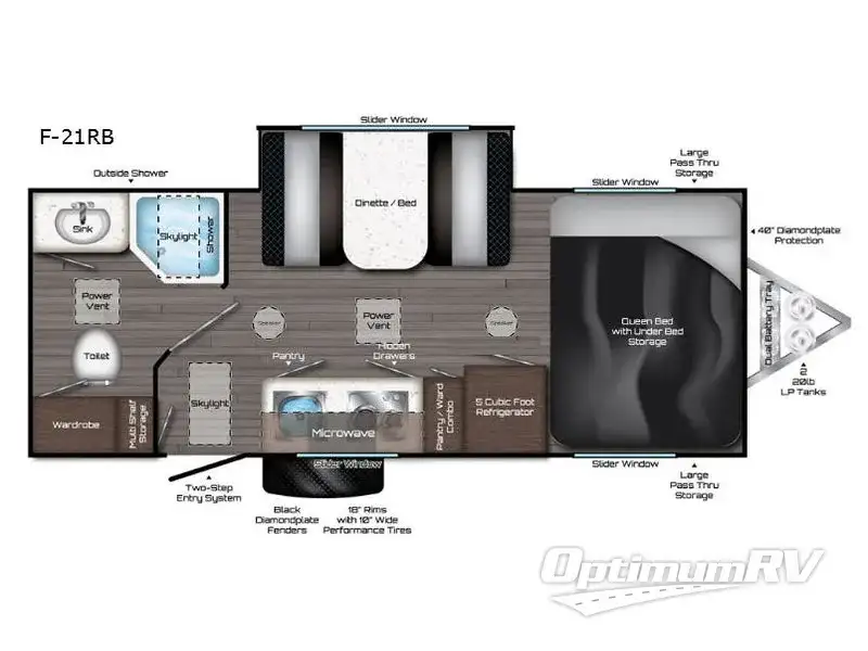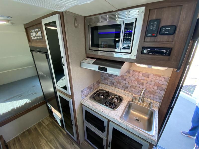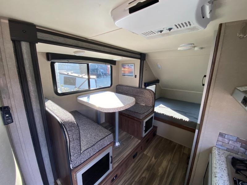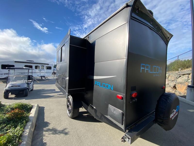 This Travel Lite Falcon F-21RB is the perfect get-a-way trailer providing you everything you need to explore for as long as you want! You will love the rear bathroom layout, and single slide out. Within the slide out there is a dinette which easily converts into a bed. There is additional sleeping space at the front queen bed. From the large wardrobe in the bathroom to the multi-shelf storage and the hidden drawers in the kitchen you won't be lacking for storage with this model! Along with all of the standard features you can also choose the Eclipse Package, Fire Package, or the GT Package!