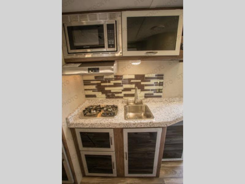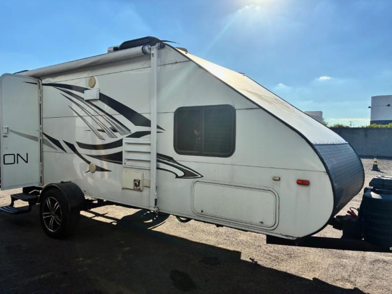 For a blend of style and ultra-lite you will want a Falcon travel trailer! The Falcon is one of the easiest travel trailers to haul! These models have an aerodynamic front and the exterior is 100% high grade rolled aluminum. Inside you will enjoy conveniences such as a stainless steel sink and microwave as well as Granicote counter tops and dining table. The skylight above the shower and entry door helps to add natural lighting throughout. Come make memories after memories with your family when you choose to camp with a Travel Lite Falcon!