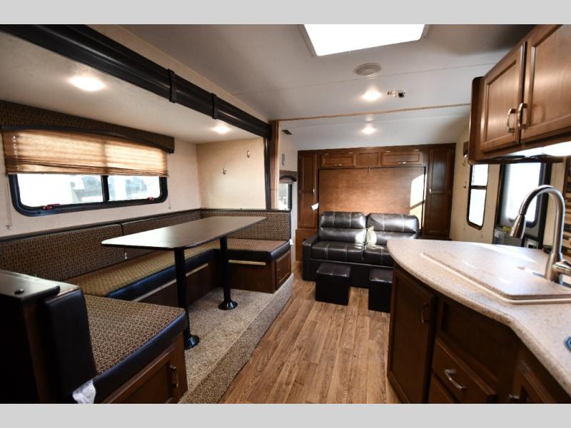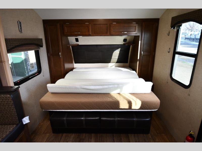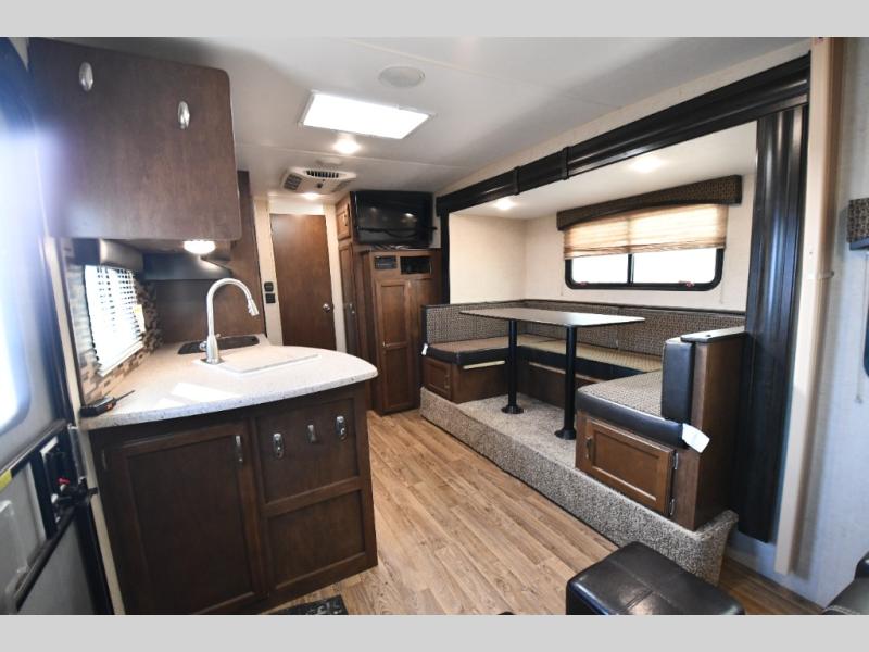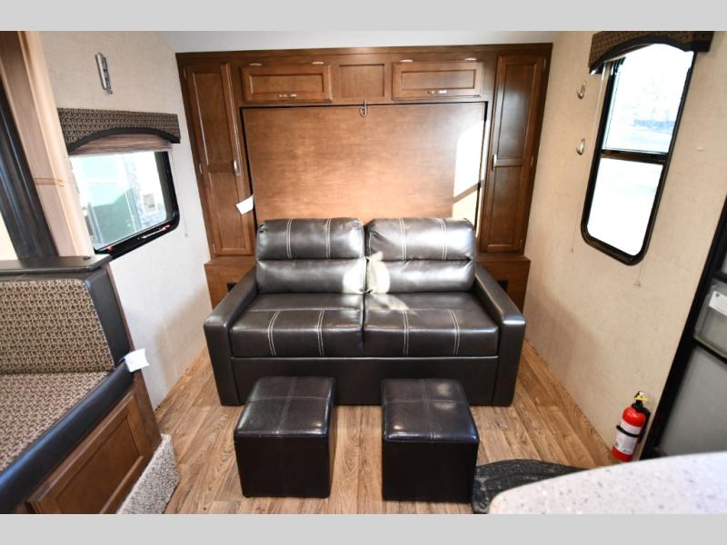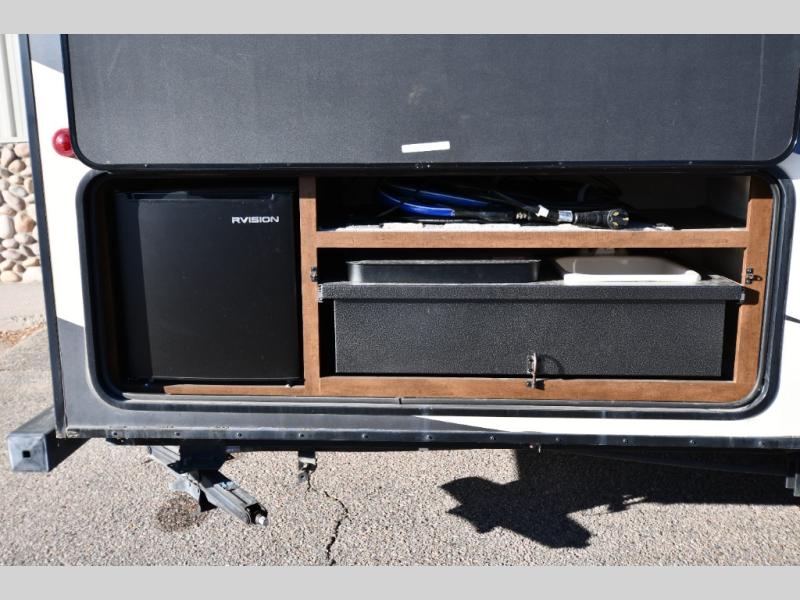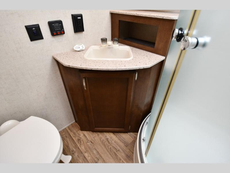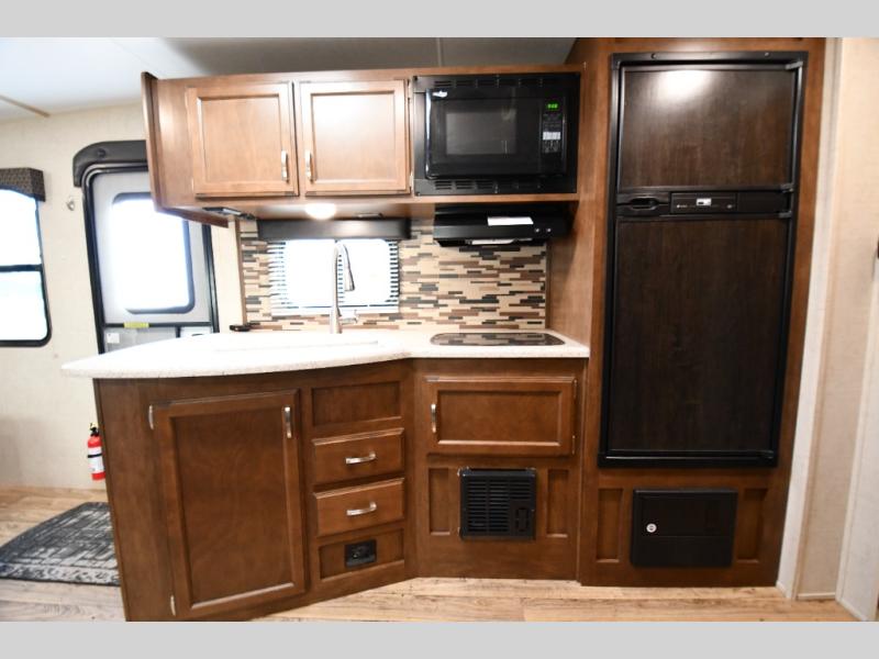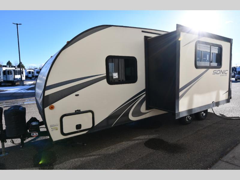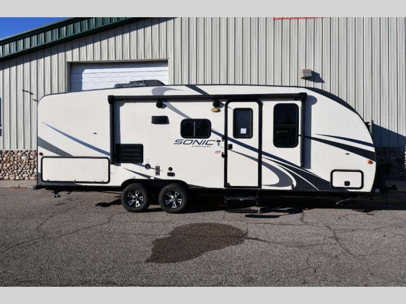 Been thinking about upgrading your RV to a travel trailer with a slide out? This model allows more interior floor space thanks to the U-shaped slide. You will surely enjoy your own front semi-private bedroom with a curtain to close for privacy. You might even like to choose the Murphy bed option which includes a sofa. You have the choice of making meals and dining inside or outside. So it's time to grab your ingredients from the indoor or outdoor refrigerator, pull your camp chairs from the pass-through compartment, and relax under the awning after dinner is made. This Sonic just makes sense, plus allows you to travel in comfort anywhere you would like to go.