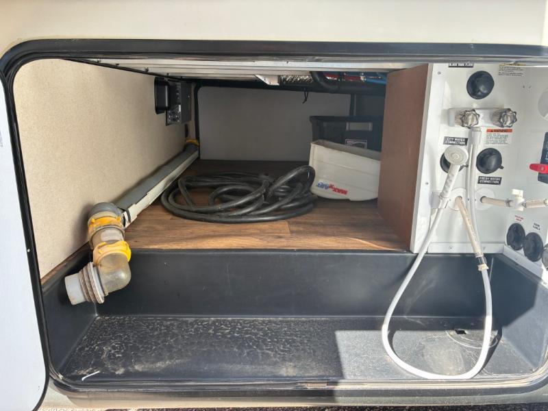 Outside you will find an awning and large pass through storage for your outdoor gear. Plus you can choose to have an optional exterior kitchen which features an overhead cabinet, sink, and an electric refrigerator. There is also an optional swivel gas grill and more!.