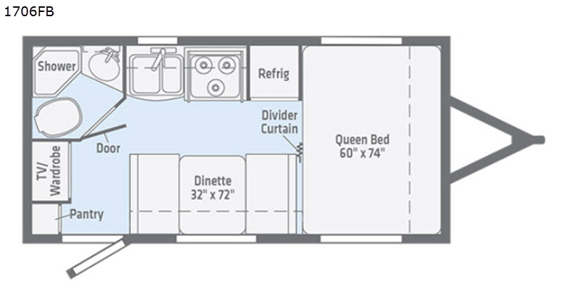Imagine riding your bikes around the campground, cooking hot dogs over the campfire, and retiring inside to a comfortable travel trailer at night. This Micro Minnie 1706FB provides a queen bed with a divider curtain for privacy, and a small dinette for one to sleep and two to dine. If you need to make meals inside there is a cooktop, microwave, and a refrigerator. You will find storage for your dry goods, wardrobe, and such. Compact doesn't mean small on features, just easy to tow and clean. Check this model out.