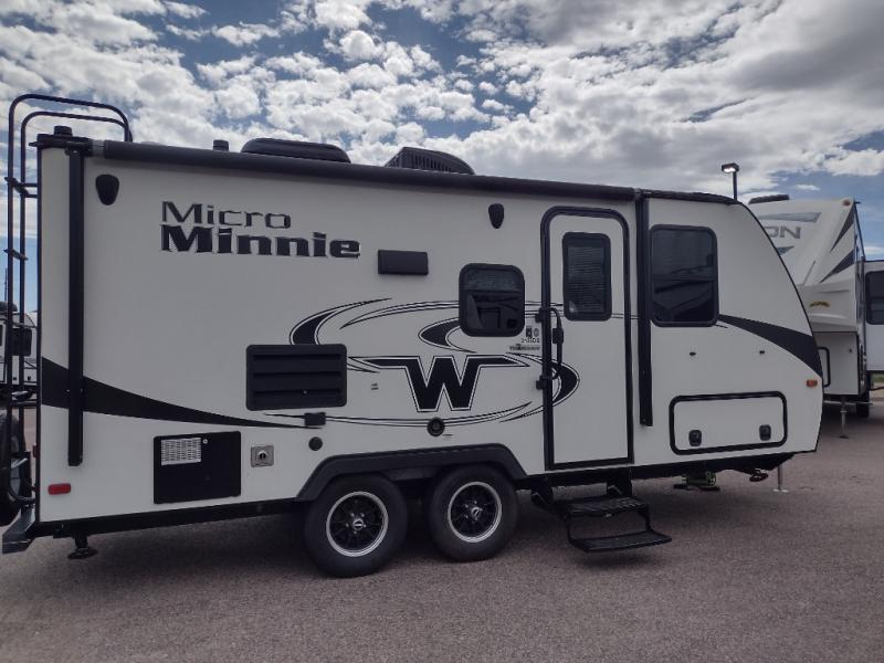With each Micro Minnie by Winnebago Industries Towables you will find modern conveniences such as a bathroom and kitchen appliances, all in a compact and easy to tow travel trailer. You will also find an LED TV for indoor entertainment, an outside shower for an additional space to get cleaned up, and a power awning for protection from the outside elements, plus much more! Come choose your favorite Micro Minnie model today!