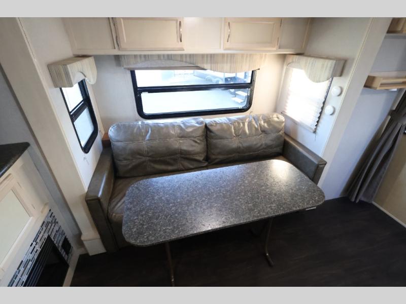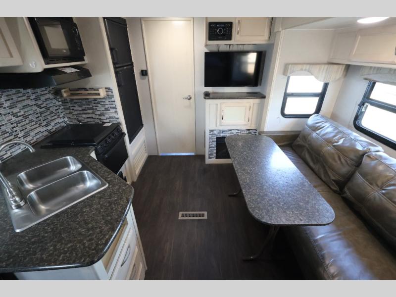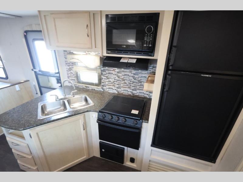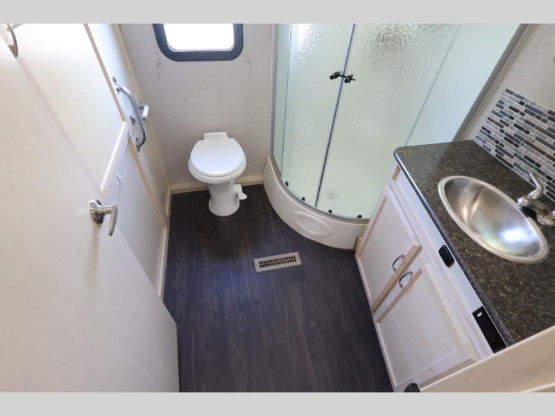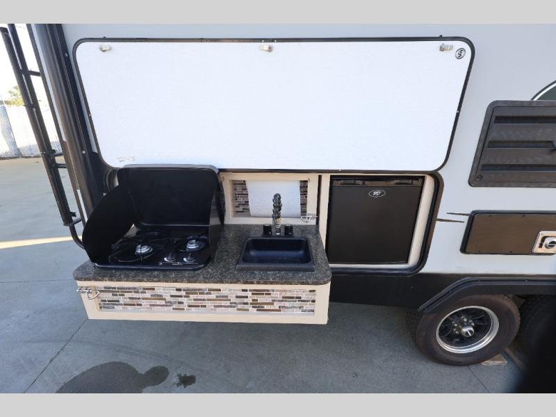 You will find this lightweight Minnie travel trailer to be an inviting home base for any weekend adventure. The single slide out sofa instantly increases your living space inside, and the spacious rear bath will make you feel like you are still at home. Enjoy the natural light coming in through the shower skylight when you are getting ready in the morning, or enjoy the twinkling stars up above at night. With this Minnie travel trailer you can even choose to cook inside or out. For those who enjoy fishing, the included exterior camp kitchen will allow all of the smells to remain outdoors when your catch of the day becomes dinner! This unit also features an outdoor shower so you can rinse off all the days evidence of fun before heading inside for the night!