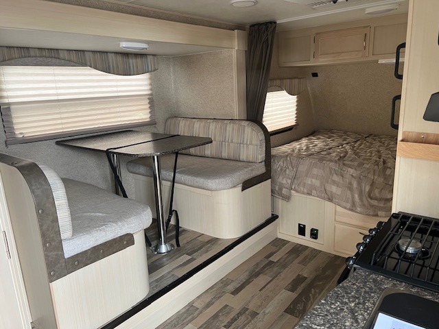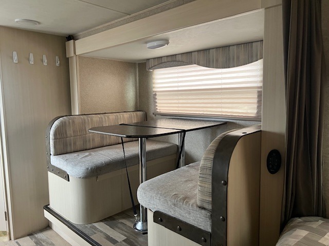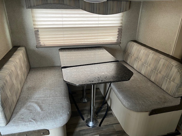 Looking for a compact travel trailer that's easy for you to move around inside? This Micro Minnie 1808FBS offers a single slide out dinette for dining, sleeping, and extra floor space to move from one end to the other. You can sleep on a queen bed with a divider curtain for privacy, and your two young children or your best friend can sleep on the dinette. The full bathroom provides a private space to change clothes and get cleaned up. The cook can use the cooktop or microwave to make meals indoors while you relax in the great outdoors under the awning. Step inside to see what else you will love about this Micro Minnie.