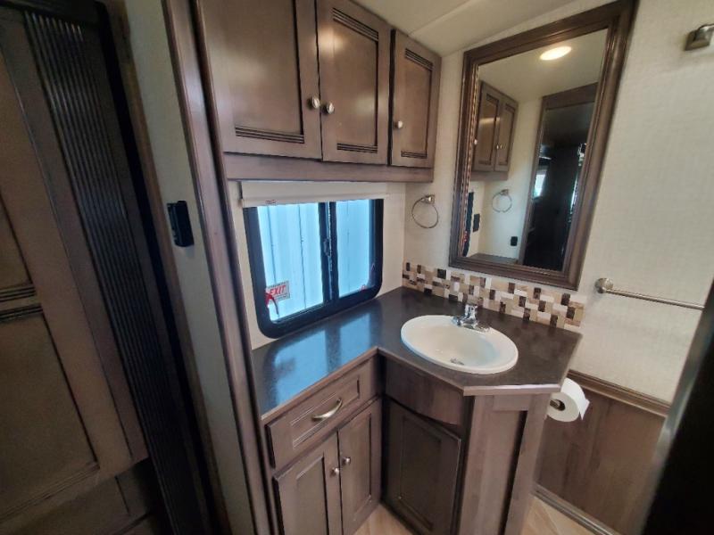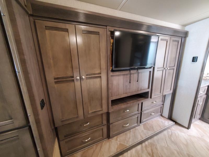 What I liked most: Bedroom is nicely laid out w/ plenty of closet and drawer space. The bath and a half comes in handy when getting ready for work in the morning. The outdoor entertainment is nice in the summer time. The heat pumps are good to about 36 deg then we switch to the furnace. Along with the fireplace it stays very comfortable, so far, down to 8 deg. The bed above the cab area is nice for xtra storage while parked. Shower is roomy. We have lived in it for 6 months and have had no problems to speak of.