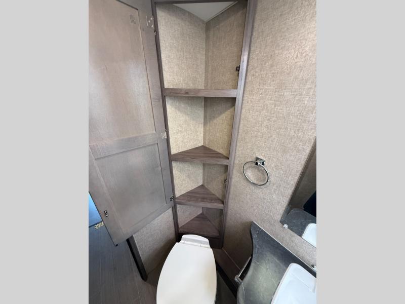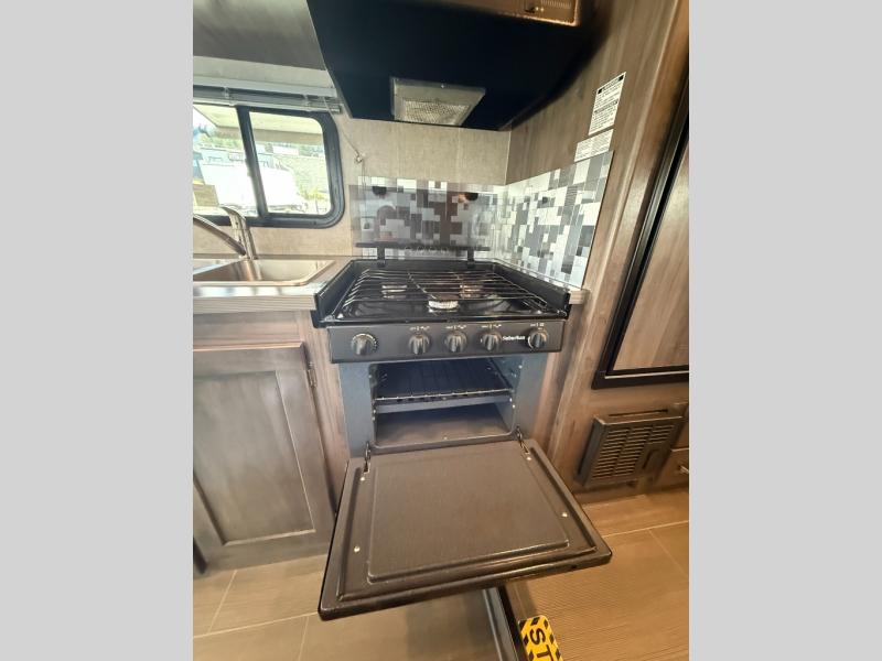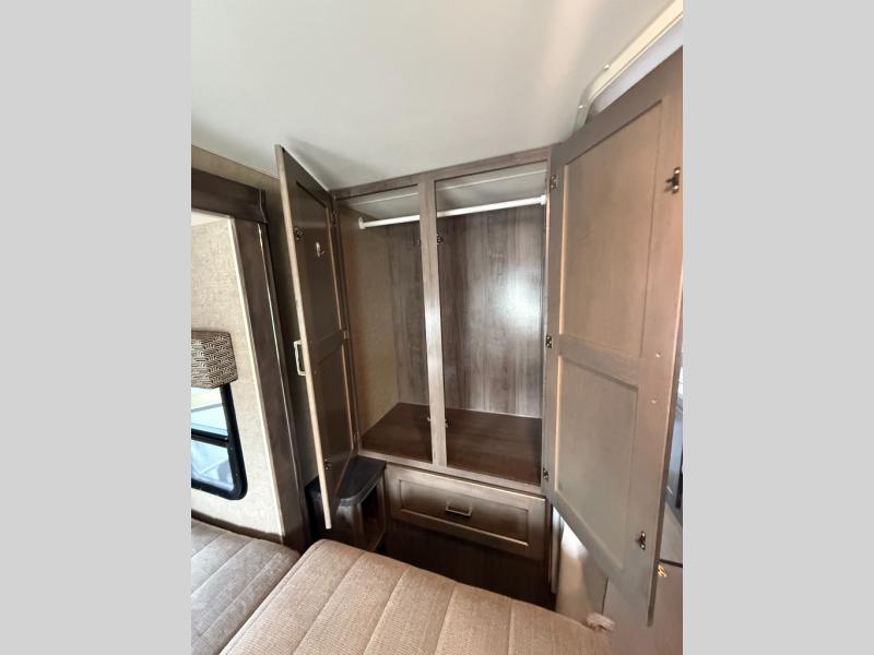 In this Spirit Class C gas motorhome you will experience what it means to let your adventurous Spirit take you anywhere. Whether you're staying up late laughing together while playing a round of cards on the U-shaped booth dinette, or you are building an impenetrable fort for your imaginative children in the bunk over the cab, you will be creating moments that will last a lifetime. The private bedroom is a cozy spot that contains under-the-bed storage and a large wardrobe giving you plenty of space to bring along all of your essentials, like your hiking boots and rain coat.