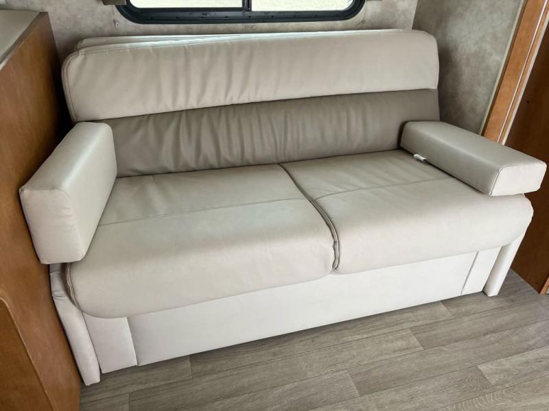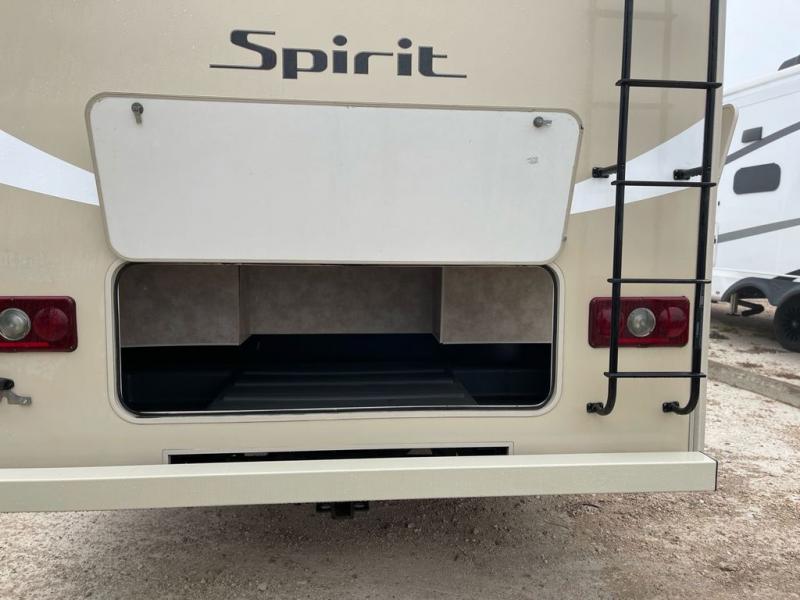 Every vacation you plan will be more enjoyable in this Spirit Class C gas motorhome. Because of a single slide that has been added into the design, this coach boasts an open-concept living area, which is a great place to have dinner together on the U-shaped booth dinette or to lounge on the sofa bed as you drink your morning coffee. And if you need some time to escape from the rest of the group in order to relax and recharge your batteries, you will find the rear, private bedroom the perfect spot to do so.