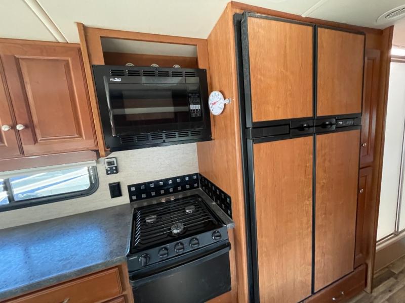 When you own this Sunstar Class A gas motorhome, you own a motorhome that is stylishly modern yet affordable. From the vinyl flooring to the interior LED lighting, this unit is completely stocked with elegant flourishes. If you need a chance to escape from the great outdoors, you can take a moment to relax in the rear private bedroom on the king-size mattress, and in the morning you will be able to cook up a full breakfast because of the 3-burner glass top range that is included in this kitchen.