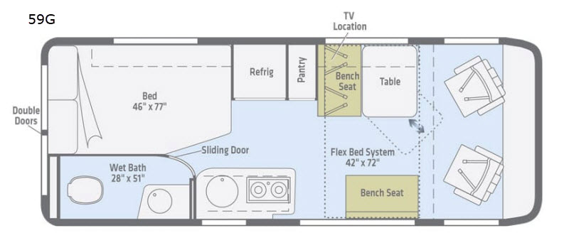 - Rear Bed Folds for Storage & Access to the Rear Doors