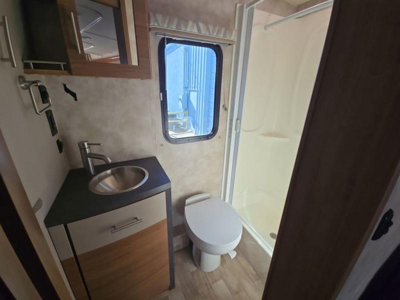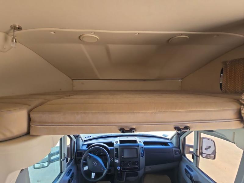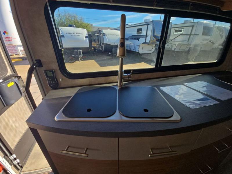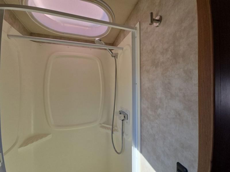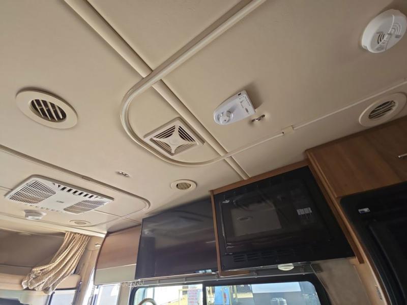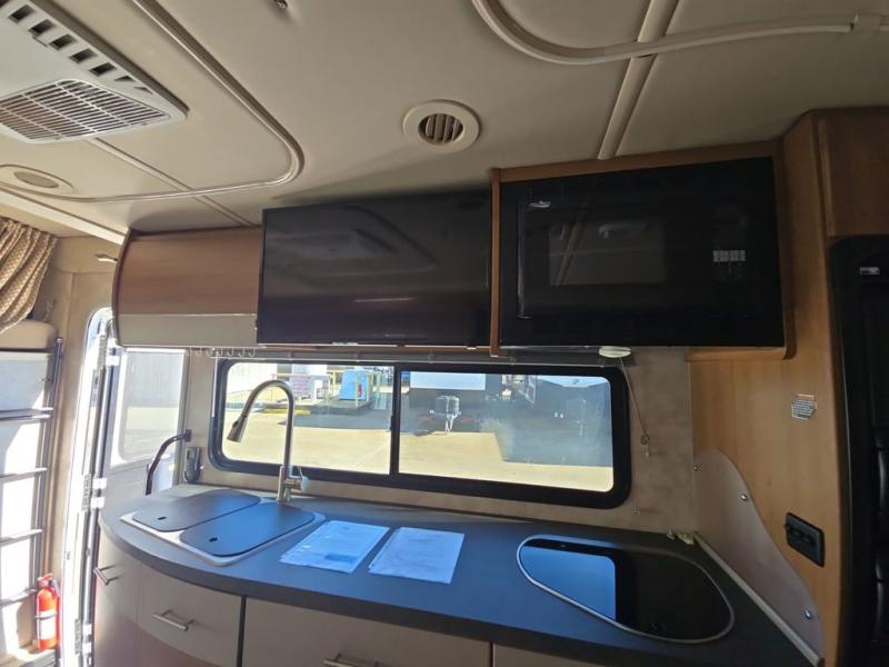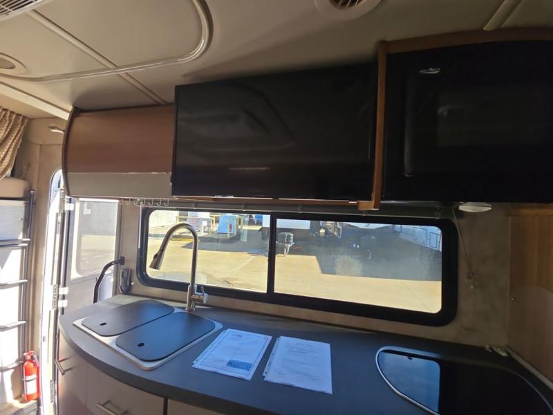Hit the road knowing that you have all that you need at your fingertips in this Winnebago View Class C Diesel motorhome. Creating meals and snacks will be easy in the kitchen because of the two-burner range and convection microwave oven, and the Norcold double-door refrigerator/freezer will keep all of your perishable items cold and fresh. You will also find a pantry cupboard near the refrigerator for all of your dry and canned goods, and the overhead cabinets keep your daily dishes and kitchen items easily accessible. You will thoroughly enjoy the convenience of having a rear bathroom in this coach, and the Murphy bed will prove to be a huge asset in providing extra sleeping space at night while still keeping the interior free from clutter during the day.
