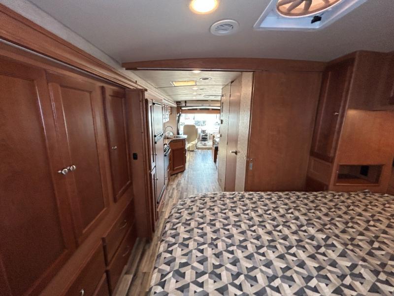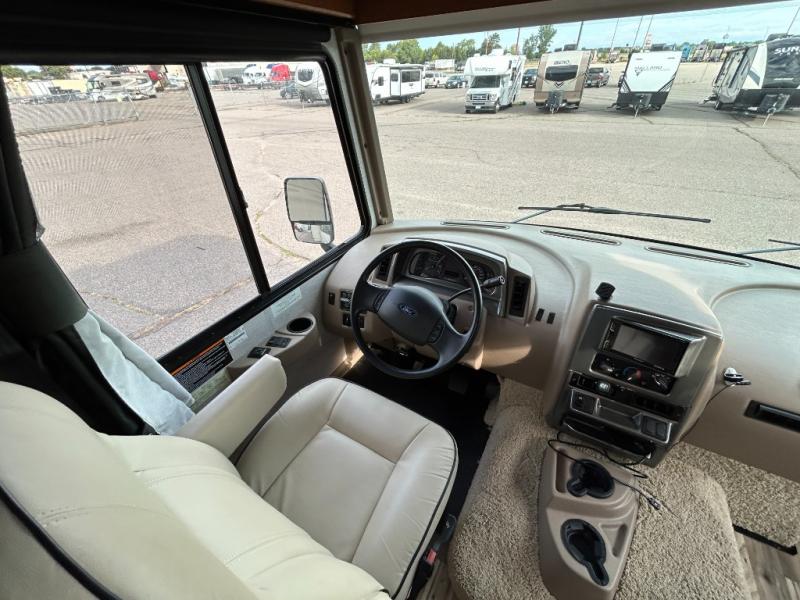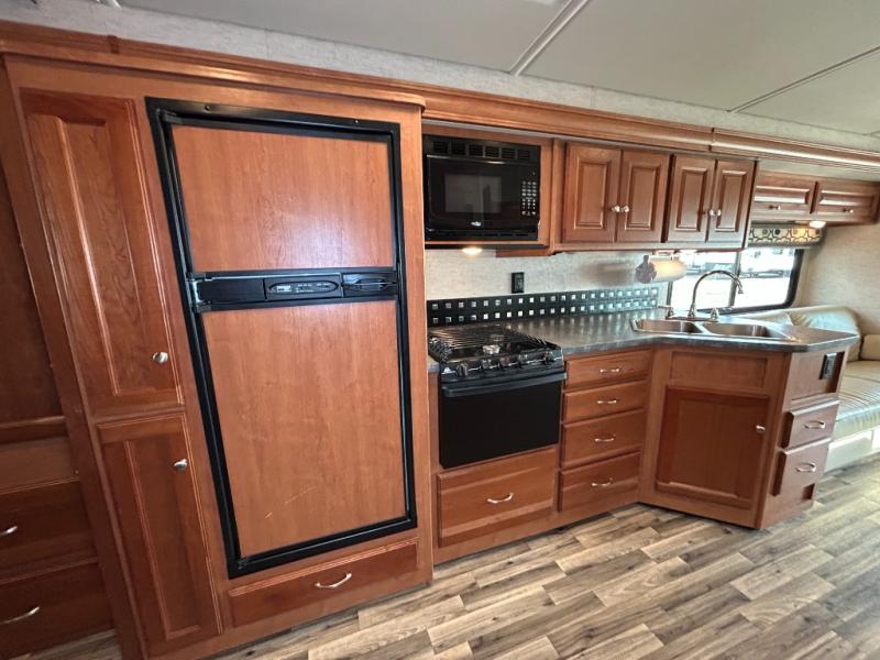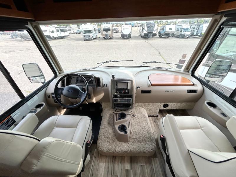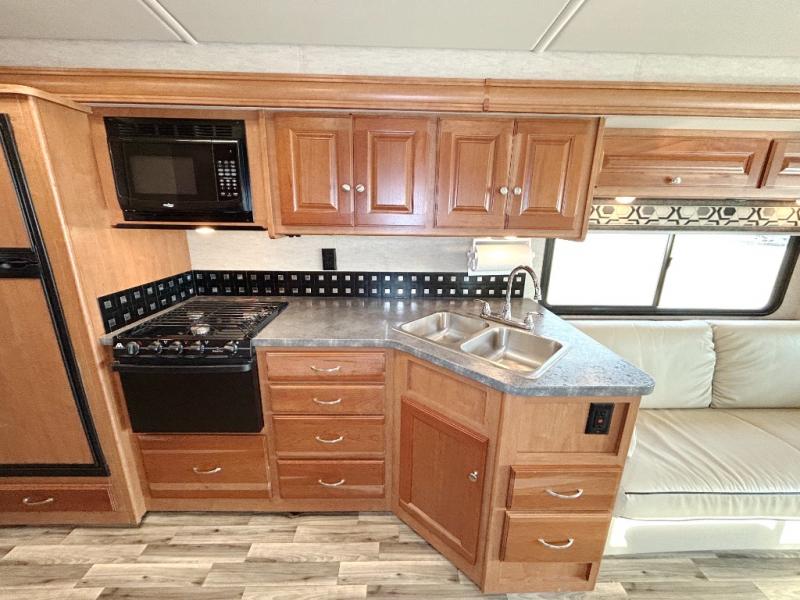 When you take a trip in this Vista Class A Motorhome, you take a trip in style. The modern flourishes, like the vinyl flooring and framed wall mirror, are what add a touch of elegance to this motorhome. The rear private bedroom allows you to escape the chaos each evening while the rest of the family gathers in the living room to watch a movie on the 40" HDTV. Powered ventilator fans are located throughout the coach to keep fresh air constantly circulating, and the tinted windows keep the sun's harmful rays from damaging the beautiful interior of this motorhome.