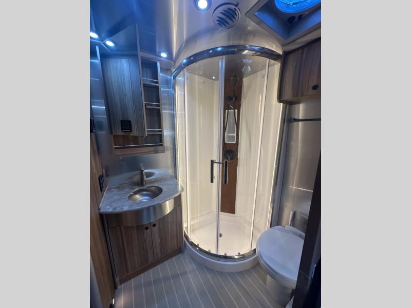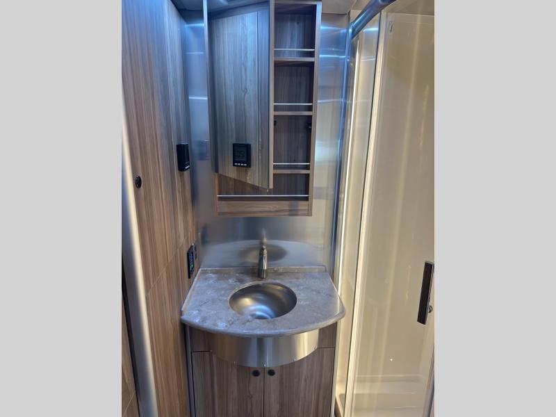 The Atlas class B+ diesel coach by Airstream provides outstanding performance from the Air Ride suspension system, the multi-function steering wheel, and the Mercedes-Benz chassis and engine. You can keep cool thanks to the Quietstream climate control system, and enjoy long naps on the Froli ergonomic sleep system which includes interlocking springs for a supportive and comfortable sleep. With 50 plus Best-in-Class features, you will find something new to love each time you take a trip.