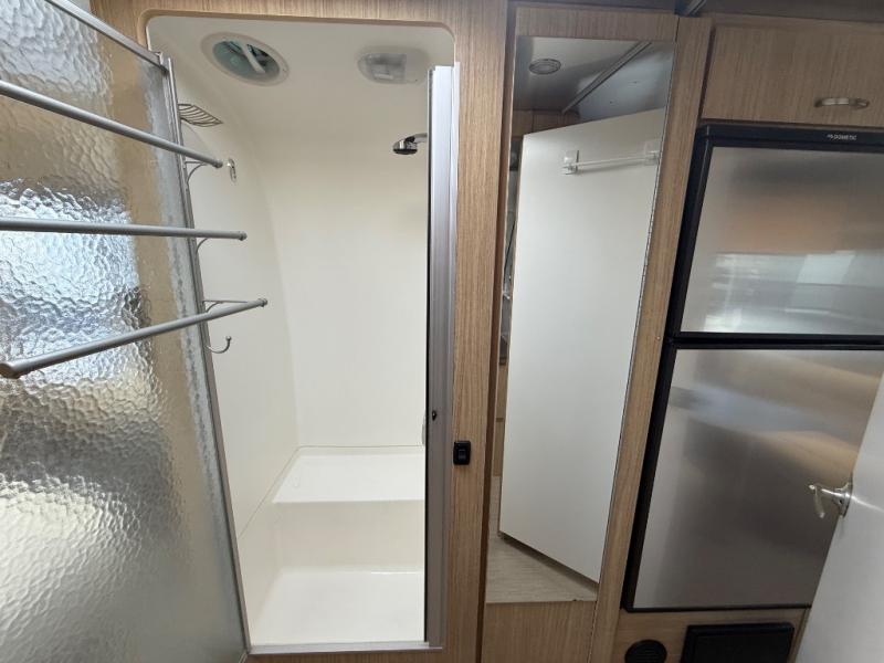 With a variety of floor plans to choose from you can easily select the Flying Cloud travel trailer that is ideal for your family. You will enjoy your view from the panoramic windows and at night you can close the Oceanair roller blinds so you have complete privacy. The enclosed aluminum insulated heated underbelly allows you to camp in all types of weather. After you are done playing outdoors then you can clean up at the exterior shower before heading inside. In the evening plan to stay outside just a bit longer and visit with your family while sitting under the patio awning with LED dimmable light. In the bathroom a fun feature is the retractable clothes line in the shower.