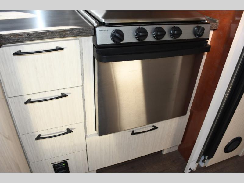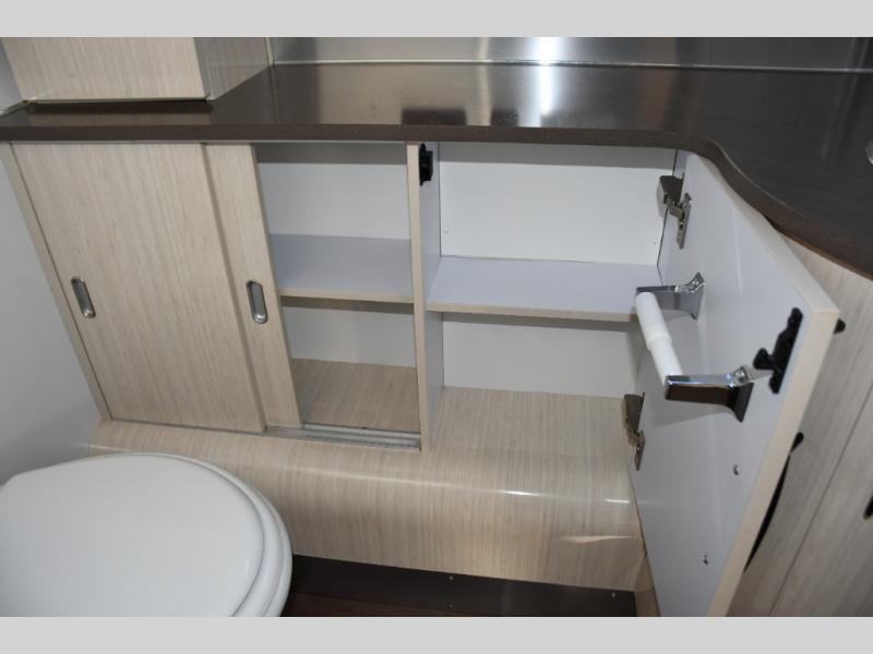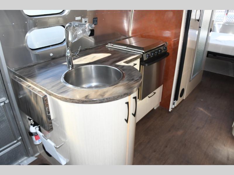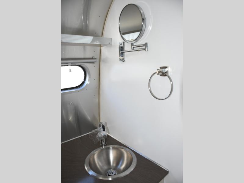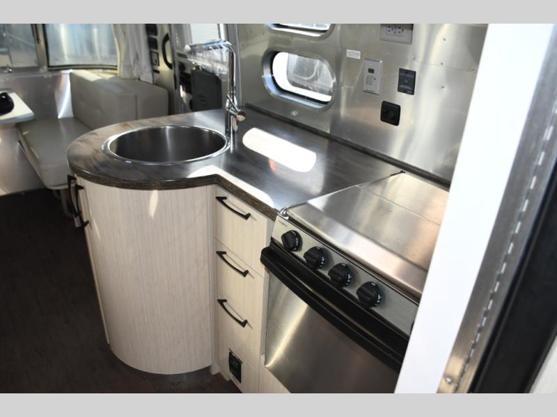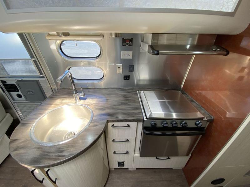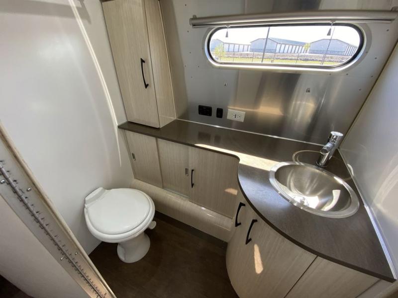 Inside, the rear bedroom features a queen-size bed with ample storage, creating a private retreat after a day of adventure. The open living and dining area provides flexible space for relaxing, dining, or entertaining, with panoramic windows that fill the interior with natural light and scenic views. The fully equipped galley includes quality appliances, durable countertops, and practical storage, making meal preparation simple and enjoyable. The bathroom is thoughtfully designed with a shower and convenient fixtures, providing comfort for both short trips and extended travel. Built with Airstream’s signature riveted aluminum construction, the Serenity 25RB Queen combines lightweight towing, durability, and long-lasting performance for peace of mind on every journey.