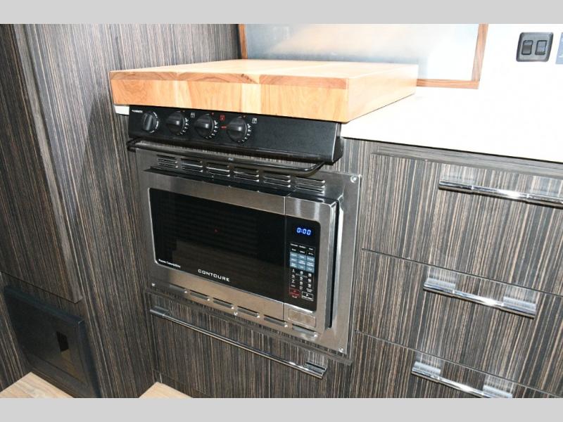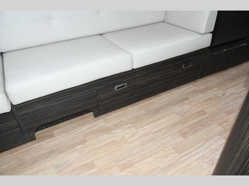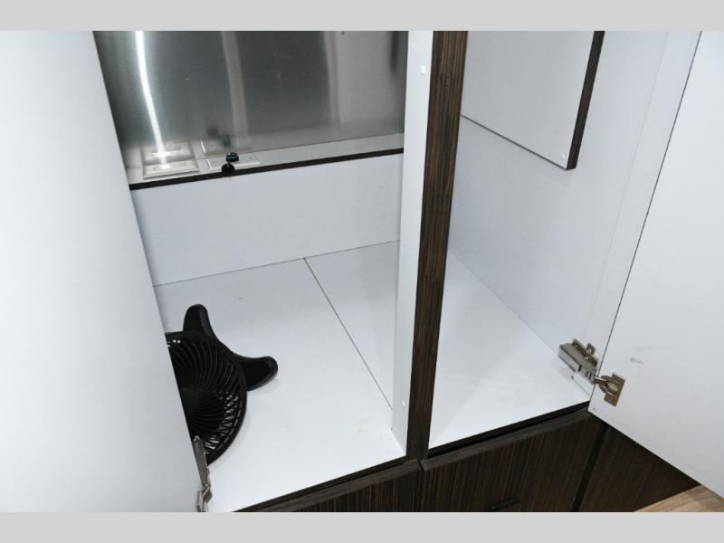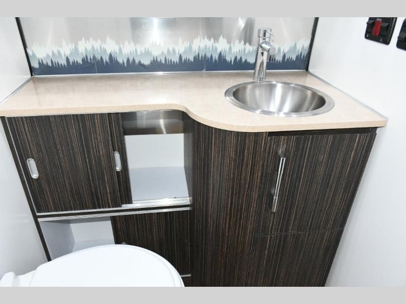 Step inside and you’re greeted by Airstream’s signature light-filled interior, thanks to the panoramic front windows that wrap the lounge in natural sunshine. The Ultraleather lounge sofa invites you to stretch out after a day of exploring, while the booth dinette offers plenty of space for meals, morning coffee, or converting into an additional sleeping area for guests.
