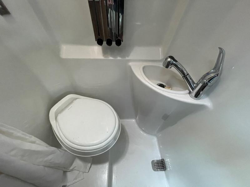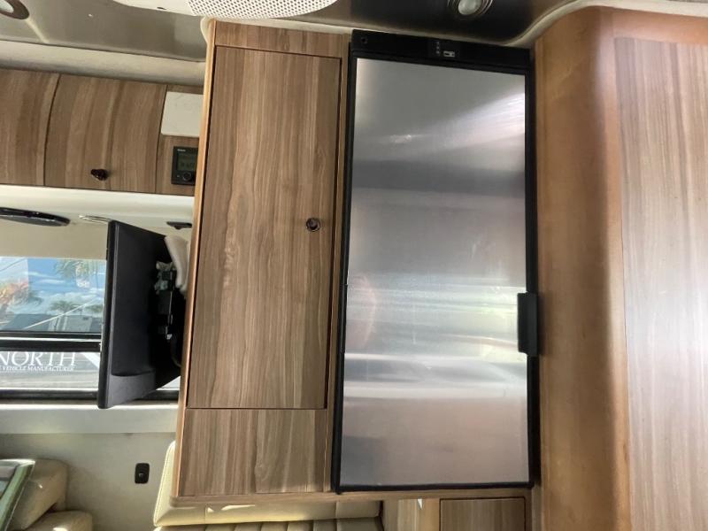 Imagine an island getaway no matter where you end up. If you enjoy a breeze from your ocean or lake spot, open up the rear doors to use the power screen, or the side screen door while making dinner or playing a card game at the removable tables. You and your friends can enjoy the four captain's chairs up front or the rear power sofa/bed with two side seats. This furniture also includes seat belts if more friends joined you, and two can sleep on the sofa and seats as they convert to a singular sleeping space. The wet bath will come in handy for those quick highway stops and while you are at your final destination, allowing you to skip the public facilities. You will also find plenty of lockers and cabinetry for storage throughout for those longer trips.