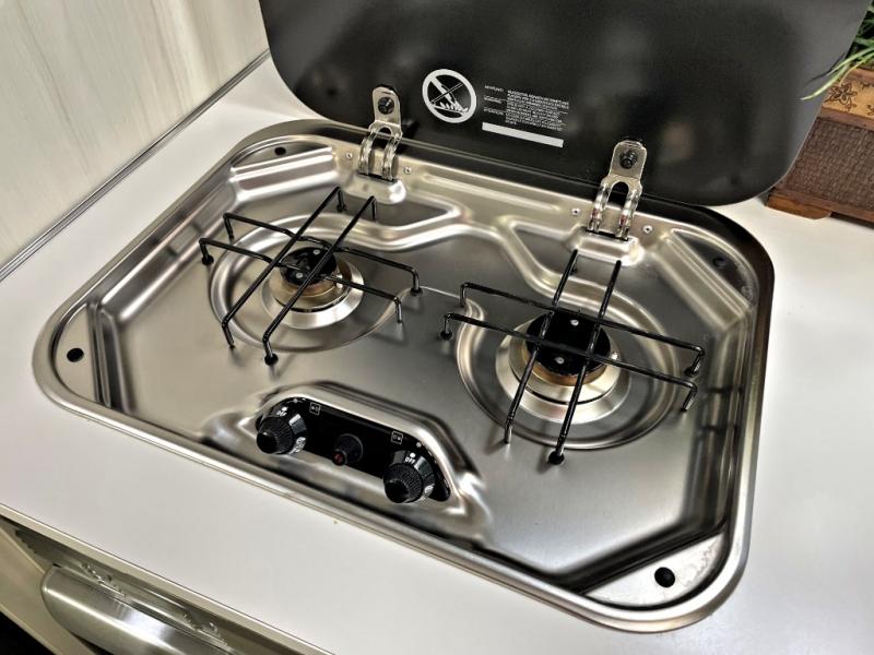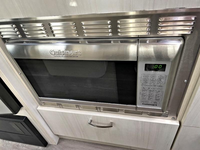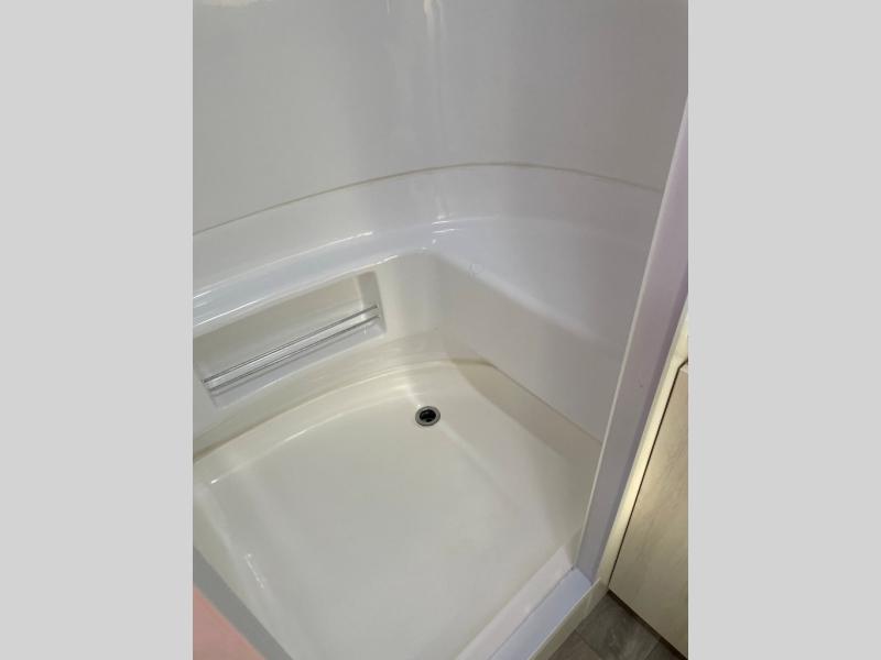 Throughout this Sport travel trailer you will enjoy the many different stylish components that have been added, like the seamless vinyl flooring that not only adds class to the interior but is also easy to keep clean. Whether you like to take this fun-sized unit with you on hunting expeditions or lakeside getaways, you will certainly love the fact that you have your very own full bathroom with you wherever you go, and the full kitchen, with its two-burner range top and convection microwave, will make it easy to keep everyone traveling with you fed throughout each trip.