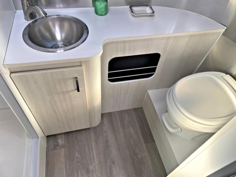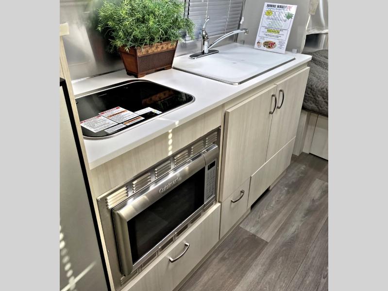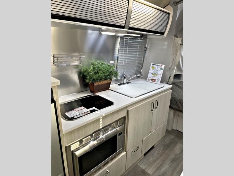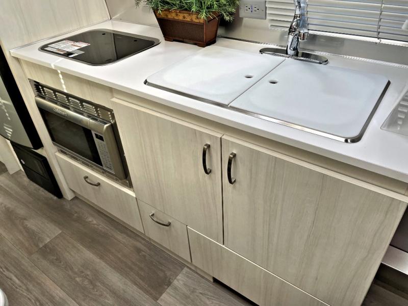 In each Airstream Sport travel trailer, you will appreciate the way that every square inch of interior space has been maximized in the one-axle, compact body. The ultraleather dinette is not only the best place for sitting down to sip your morning coffee, but it is also a comfortable bed for you to sleep on each night once you fold down the table and cushions. Each morning you will be greeted by the sun's cheerful rays streaming in through the panoramic windows, and if you prefer to keep the bright light hidden until you are ready to embrace it, then you can simply close the blackout shades each night before bed.