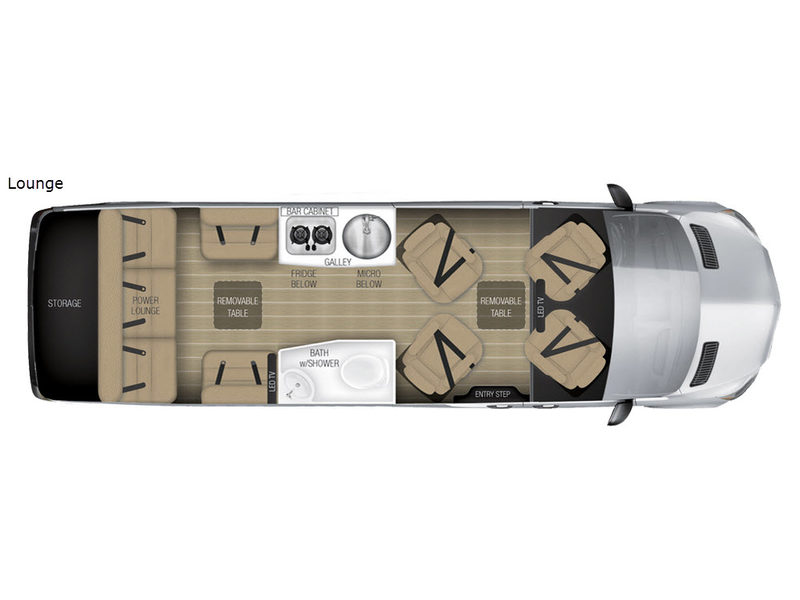You will find everything that you need inside this Special Edition Tommy Bahama Relax Edition touring coach by Airstream. This class B diesel Interstate Lounge model will provide you with the feel of an island getaway no matter where you end up. The breezy interior decor and accessories will make you feel like you have just found paradise. Step inside to find a comfortable space to gather with four captain chairs. The driver and passenger seats swivel around to become part of the living space in back. There is a removable table that can be placed in the center when needed making this a great place to enjoy with family and friends. There is also an LED TV up front as well for your enjoyment. The wet bath with shower makes cleaning up a breeze as well as saving space throughout the motor home.