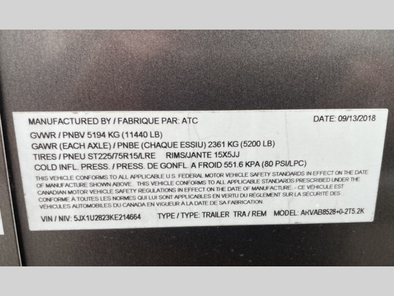 Used 2019 ATC Trailers ATC Toy Hauler 8528 Toy Hauler Travel Trailer