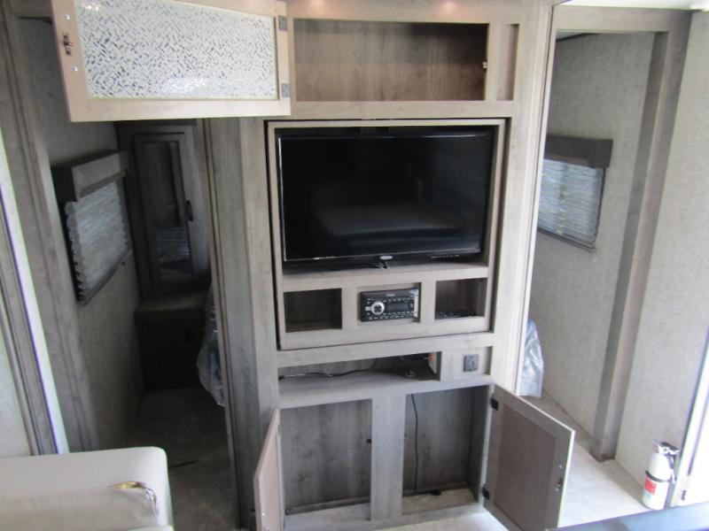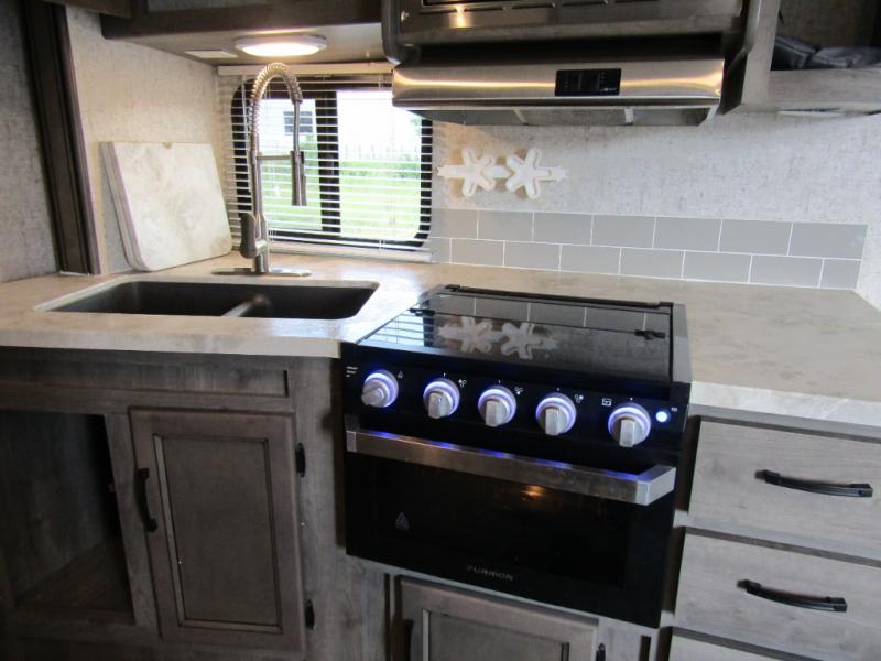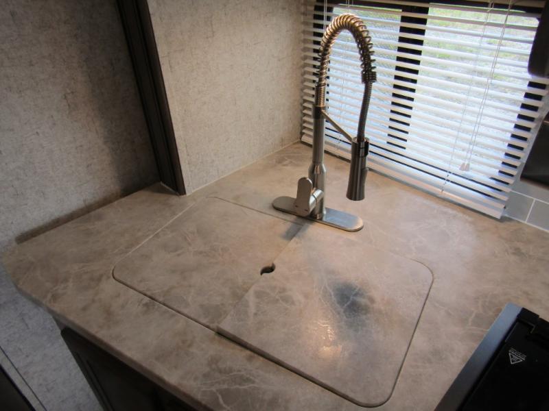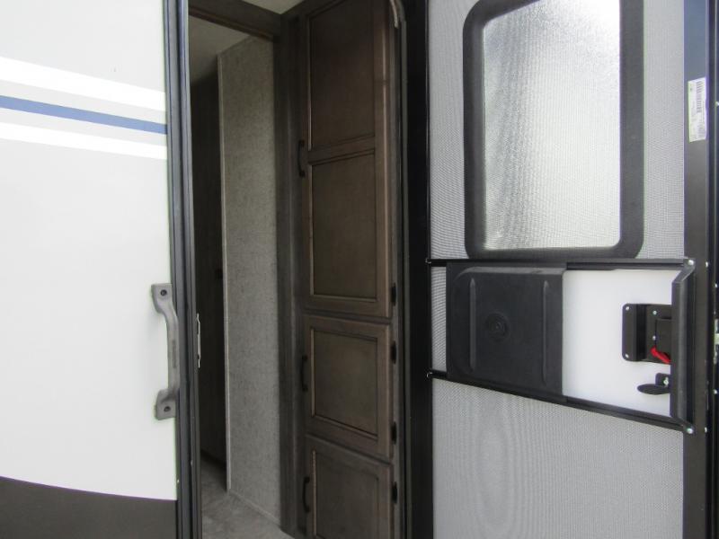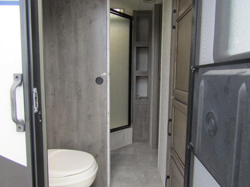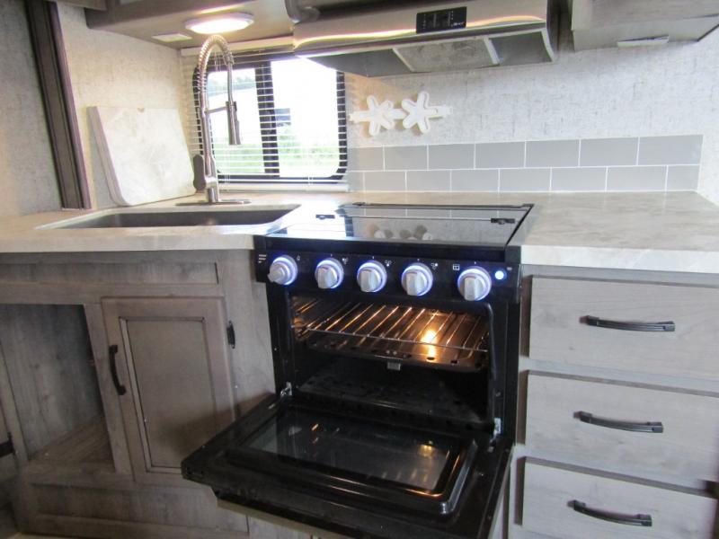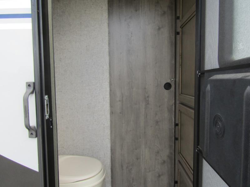 Lightweight and easy to tow, this Apex features Azdel composite sidewalls for moisture resistance and durability. Additional highlights include a power tongue jack, LED-lit electric awning, outdoor shower and speakers, pass-through storage, and prep for solar and backup camera.