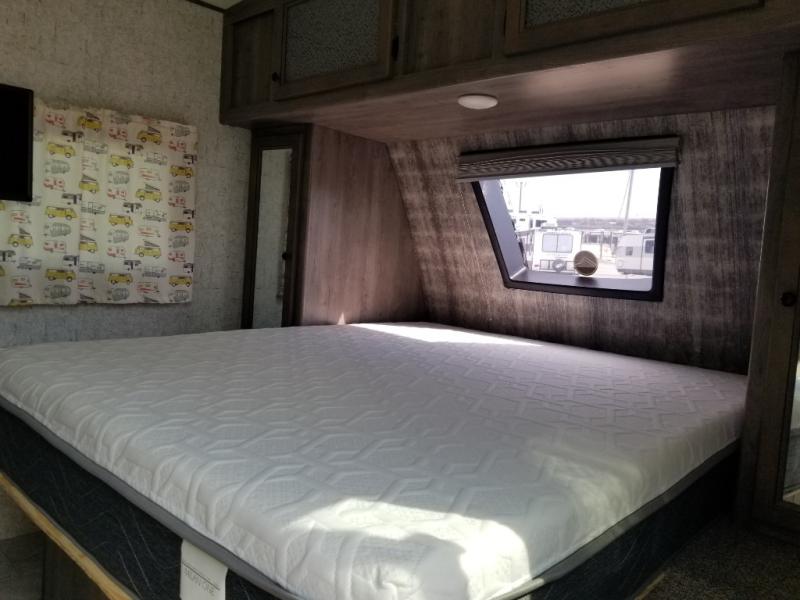 This Apex Nano model makes camping more enjoyable for two or a small family. Model 187RB offers a front queen bed for the owners, plus a booth dinette for added sleeping space for one. This cozy model also provides a full bathroom including a wardrobe. There is plenty of storage throughout on the interior along with a front exterior pass-through compartment that is accessible from either side. After you have enjoyed a fun day on the trails, you can rinse off at the outdoor shower and crank up the tunes too with the outdoor speakers. Stop imagining how much fun you will have, and start living it!