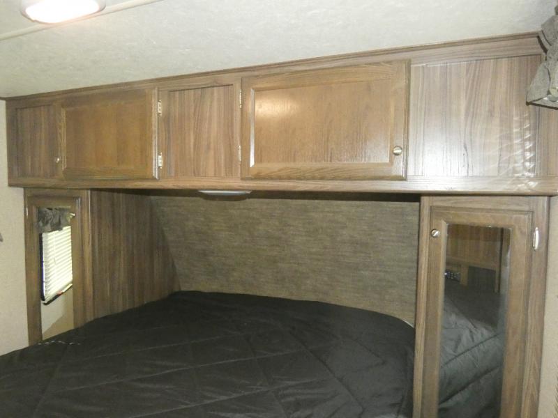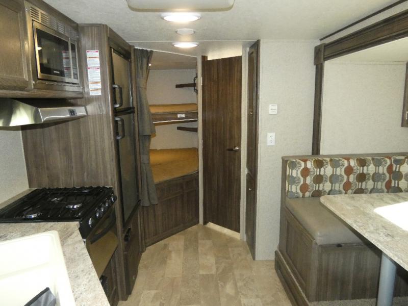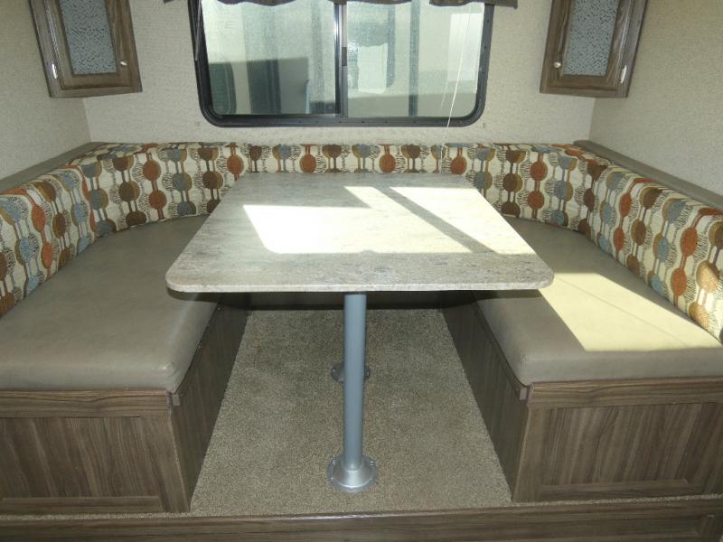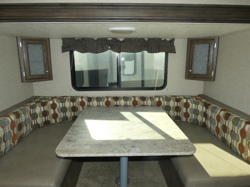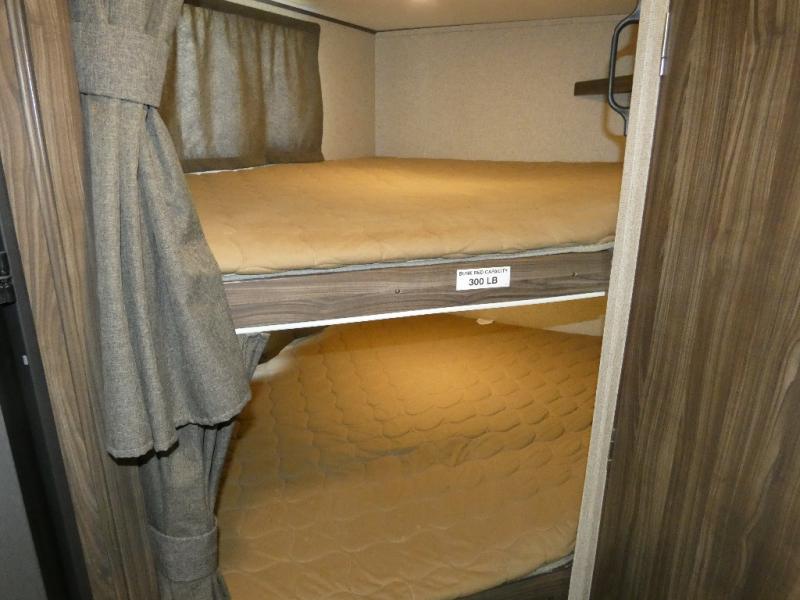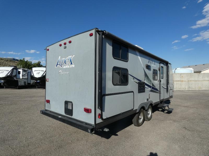 This Limited Edition Apex Ultra-Lite travel trailer has enough space for a larger family, one that enjoys taking along a friend or two, or even room enough for grandma and grandpa to enjoy a weekend with the grandkids around the campfire eating s'mores! Model 24LE offers sleeping space for eight campers on a queen bed, the set of double size bunks, and the U-shaped convertible dinette when folded down for the evening. There are full kitchen and bath amenities including plenty of storage, plus more!