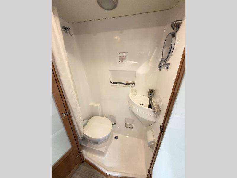Comfort and style are around each corner in this versatile coach. Model 22C features five set of seatbelts for your family and friends to ride along to a local game, or state event. The rear power sofa provides sleeping for two with the dimensions of 68" x 76" when in the down position. There are two jump seats for more seating for visiting and relaxing. You will have the convenience of a wet bath, and a galley kitchen with appliances to make meals and snacks for the whole gang. You can even watch the big game on the 22" LED TV, plus sit outside under the Carefree armless awning with wind sensing and LED lighting, plus so much more!