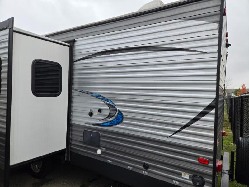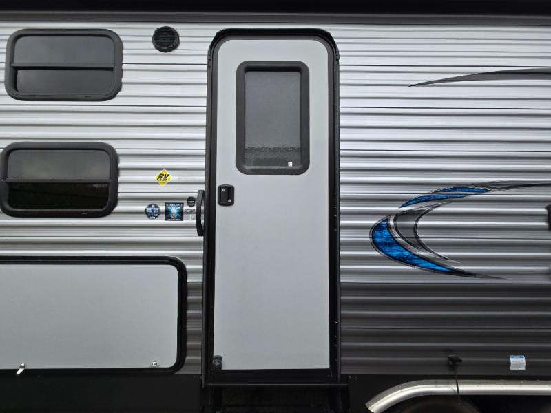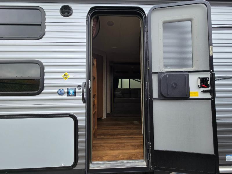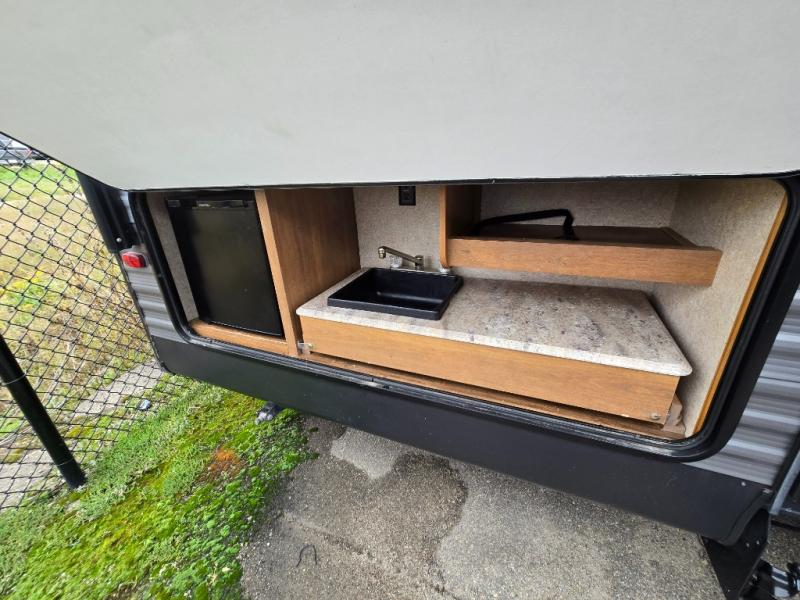 This Catalina Legacy travel trailer is ideal for any family who enjoys a weekend away at a nearby campground. In the bathroom there is a full bathtub which makes rinsing off after a long day at the lake quite easy! The opposite corner from the bathroom features a set of double-size bunks. Come relax and visit with your family at the U-shaped dinette or the sofa. A handy coat closet is near the entry door, and as you head outside you will enjoy the shade from the 18' electric awning with LED lights. If you want to grill some hot dogs or hamburgers, then you will want to head outside to the outdoor kitchen!