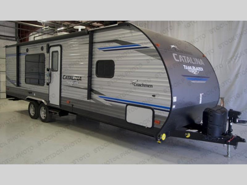 Coachmen RV has done it again with the Catalina Trail Blazer's! These toy hauler travel trailers each have a large ramp door for easy loading and unloading of your toys, plus there is a Toy Lok system that helps to keep everything in place. The exterior utility shower is super helpful after a long day of mudding, which means you can rinse off before dragging mud throughout the trailer. There is also a front diamond plate, back-up camera prep, and a fully enclosed underbelly to ensure safety as you travel. Inside you will love all of the at home features like the LED lighting, the residential pull down faucet to make your clean up easier, and the Furrion DVD/mp3/FM Stereo w/ Bluetooth and USB Charging Port, plus there is an upgraded in-wall speaker system. So, come check out the Coachmen Catalina Trail Blazer toy hauler that best suits you!