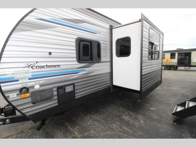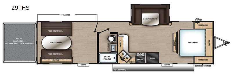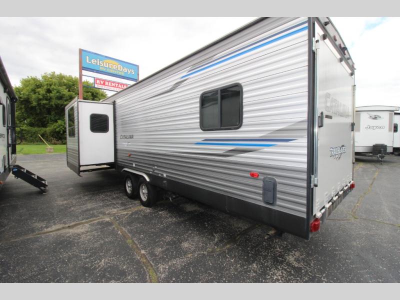 If you wish to bring along your favorite off-road toys on your next adventure, then check out this Coachmen Catalina 29THS! It features 11' of cargo space and a 90" x 74" ramp door so that you can load and unload your toys with ease, and you will also experience a smooth flow of traffic in and out of this unit with the double entry doors. With off-roading toys, comes lots of accessories which can easily be stored and accessed in the exterior storage. Your meal times can be family times when you enjoy them at the U-shaped dinette that can also transform into an extra sleeping space at night. You can enjoy the great outdoors at anytime when you grab a chair and your favorite beverage, and head underneath the 15' power awning with blue lights to keep the good times going even at night!