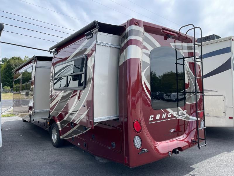 With the Concord class C motorhome by Coachmen RV, you have your choice of chassis; either a Chevy 3400 V8-6.0L or a Ford 3_450 V10-6.8L. Each unit includes a 4.0KW Onan gas generator, an Intellitec Command Center, plus a power awning with vinyl weather guard and LED lights. Some of the interior features you are sure to love are a flush mount, double door dometic refrigerator, an upgraded Serta mattress, and a skylight over the shower, plus much more. These units also include Even Cool A/C, a residential duct work system that allows a more efficient and quite way to cool off your whole motorhome.
