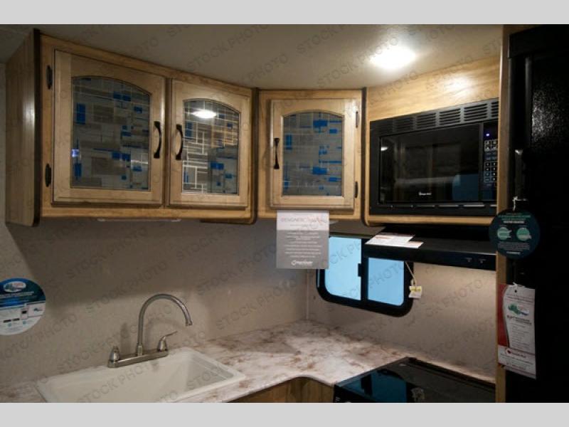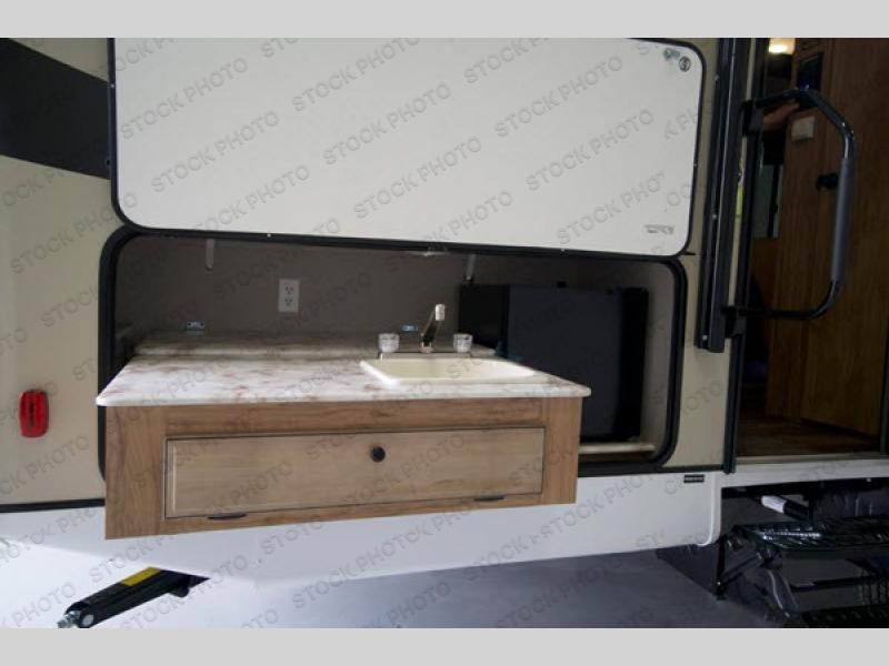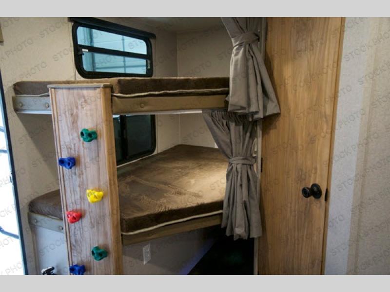 If you've been searching for a travel trailer to accommodate the whole family plus a few extra friends, stop looking! This Freedom Express Ultra Lite travel trailer offers sleeping space for eight to nine people. You can dine, play games, and even take the dinette's removable resin outdoor table outside by the camp kitchen if you want extra serving space! You'll have the comfort of sleeping on a queen bed in the front private bedroom, while the kids or guest sleep on the double bunk beds. This unit also includes a closet with shelves to hang your jackets and store dry goods.