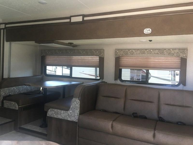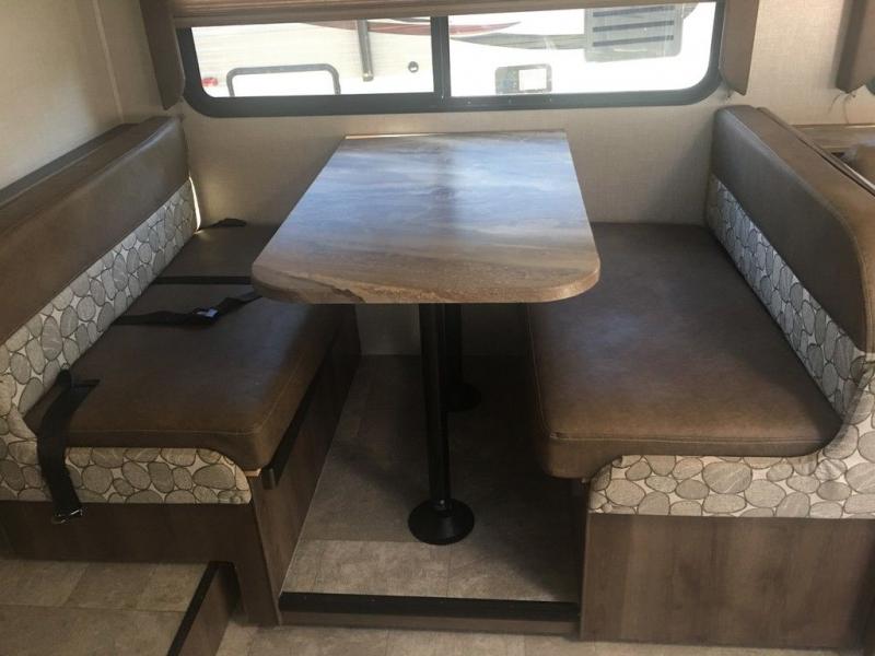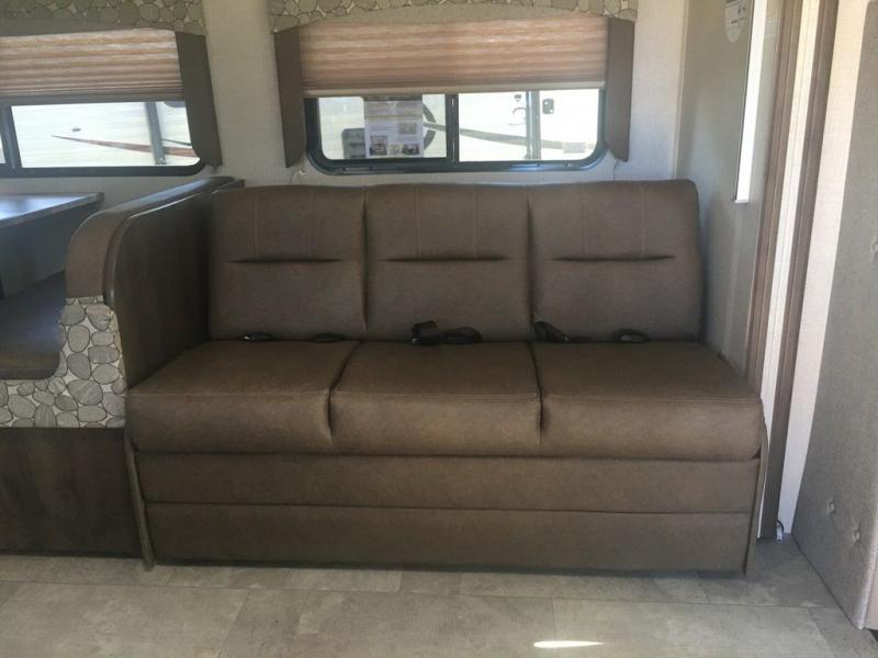 With the Freelander motorhome you will get a reliable and quality Class C gasoline coach that contains more factory-installed features than anyone else. The Freelander features Azdel composite walls and a fiberglass exterior to keep the entire structure lightweight, and is has been prepped for solar panels to make it easier for you to go off-grid whenever you choose to do so. LED lighting and high-quality furnishings, like the nutmeg wood grain cabinets and kitchen backsplash, give the Freelander's interior a touch of elegance, and the reclining cab seats will be helpful to have as you make your way across the countryside.