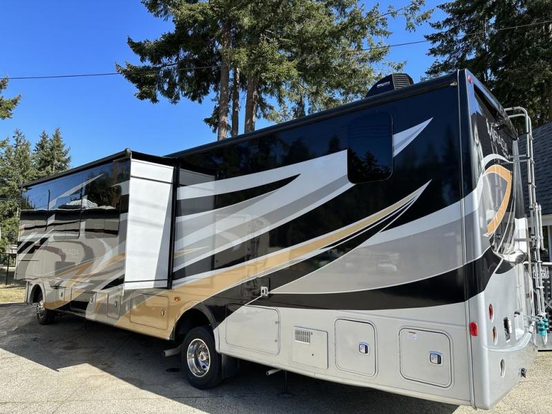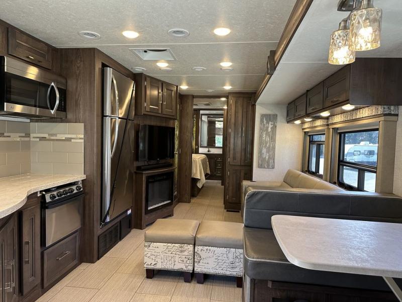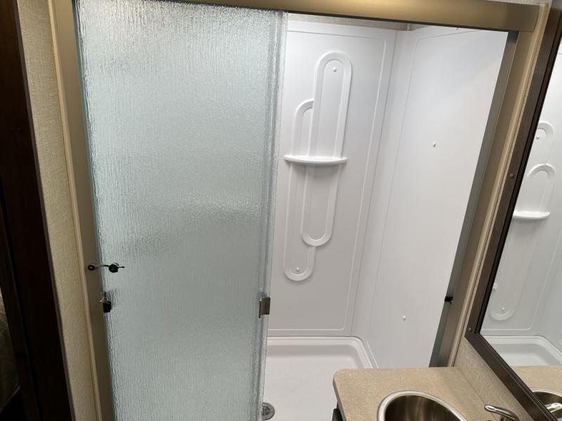 Looking for a way to travel with your own accommodations whenever you like? This motorhome is exactly what you need to comfortably see the countryside! With double slides, a fireplace, and one and a half baths, it will almost feel as though you haven't left home. The walk-through bedroom allows you to sleep on a queen bed while watching TV, store your clothes in one of the two wardrobes, and have quick access the rear full bathroom. The chaise lounge with a bed is the perfect spot for guests to relax or sleep if necessary. You can enjoy your morning coffee while relaxing on the driver and passenger's chairs for a different view. There is more to see, check it out!